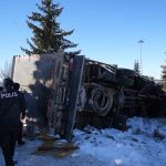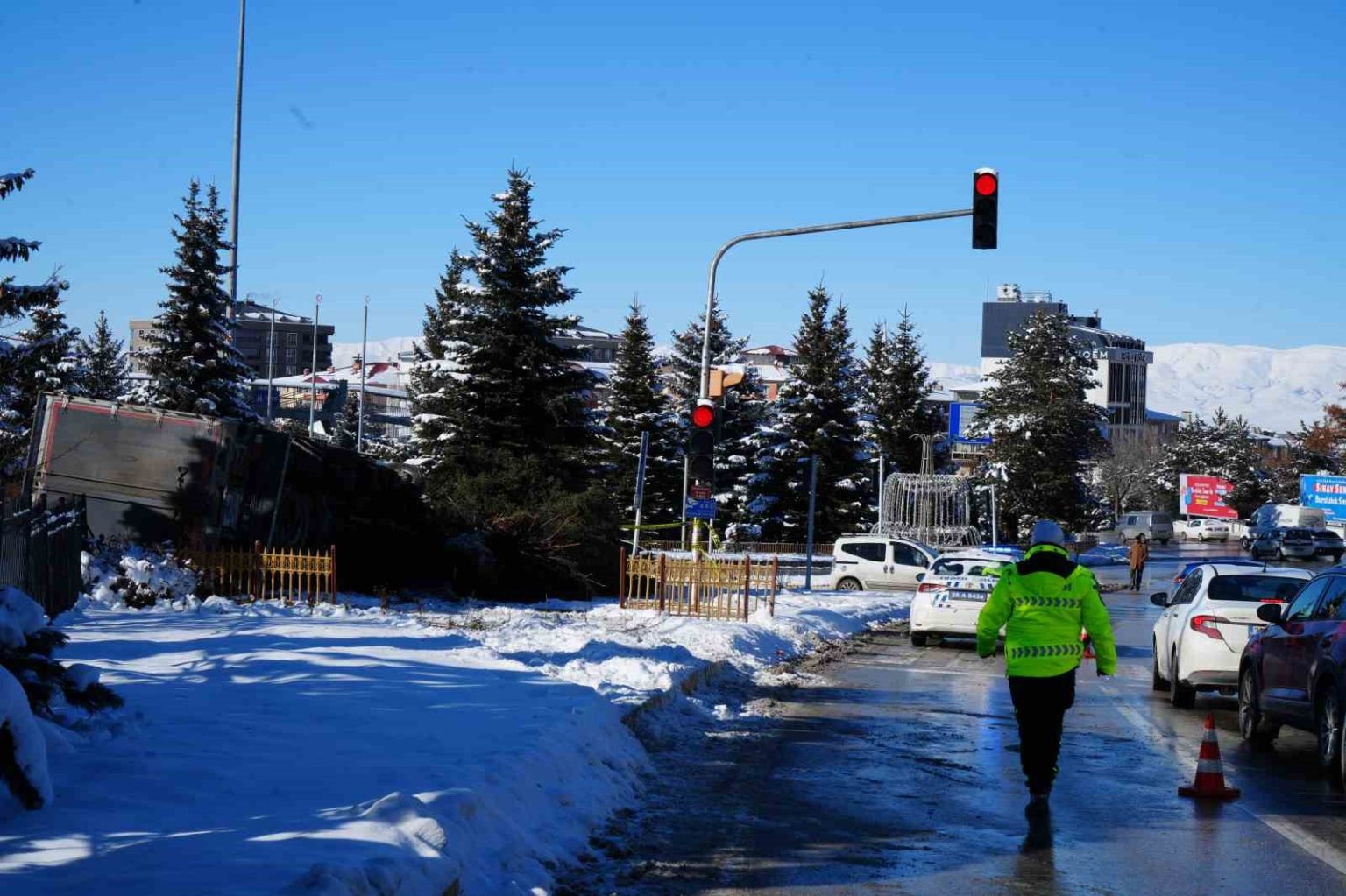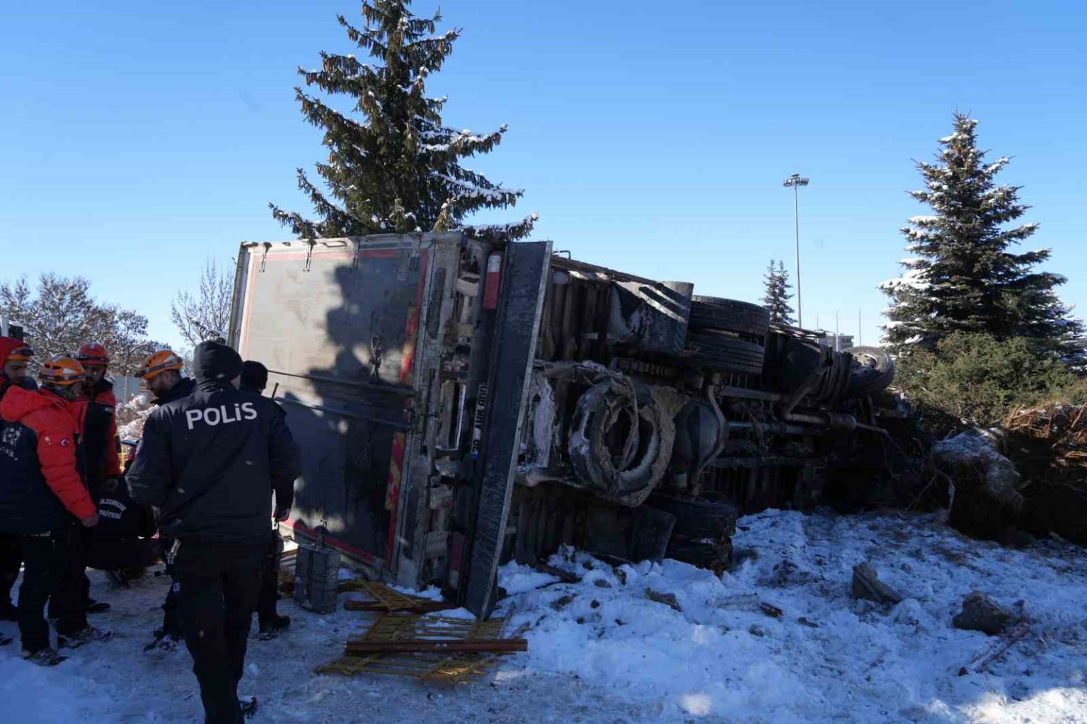 Polis olayla ilgili inceleme başlatırken, devrilen kamyon bir süre sonra vinçle kaldırıldı.
