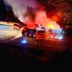 Isınan tekerlek balatalarından çıkan alevler sunta yüklü tırı yaktı