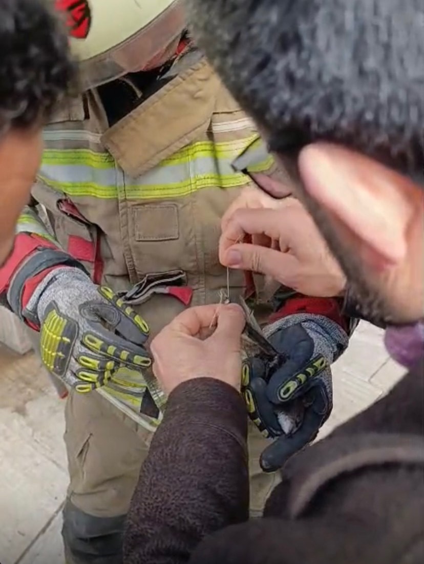 İskenderun ilçesi Savaş Mahallesi’nde binanın dış cephesindeki duvarda ipe dolanan bir kuş mahsur kaldı. Olayı fark eden vatandaşlar durumu itfaiye ekiplerine bildirdi. İtfaiye ekipleri, kuşu bulunduğu yerden dikkatli bir şekilde kurtardı. Yapılan müdahalenin ardından kuşun sağlık durumunun iyi olduğu belirlenen kuş yeniden doğaya salındı.