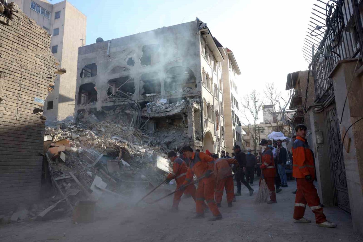 İsrail’in İran’a yönelik saldırıları sürerken bu sabah başkent Tahran’da bir sinagog yakınlarına saldırı düzenlendi. Yerel basın, ilk incelemelere göre saldırıda Horasaniye Sinagogu’nun “tamamen yerle bir olduğunu” açıkladı. Olay yerine gelen sivil savunma ekipleri enkazdaki arama-kurtarma çalışmalarına başladı. Olayda can kaybı ve yaralanmaya ilişkin kesin bir açıklama yapılmadı. Saldırıda oluşan hasar ve muhtemel can kaybına yönelik değerlendirmeler sürüyor. İran’daki yarı resmi Mehr Haber Ajansı, saldırının İsrail tarafından gerçekleştirildiğini öne sürerek, olayda sinagogun bitişiğindeki bir binanın hedef alındığını savundu. İbadethanenin bulunduğu sokağın dar mimarisi ve bölgedeki binaların birbirine bitişik olması nedeniyle olayda çevredeki binalarda da hasar meydana geldiği belirtildi.