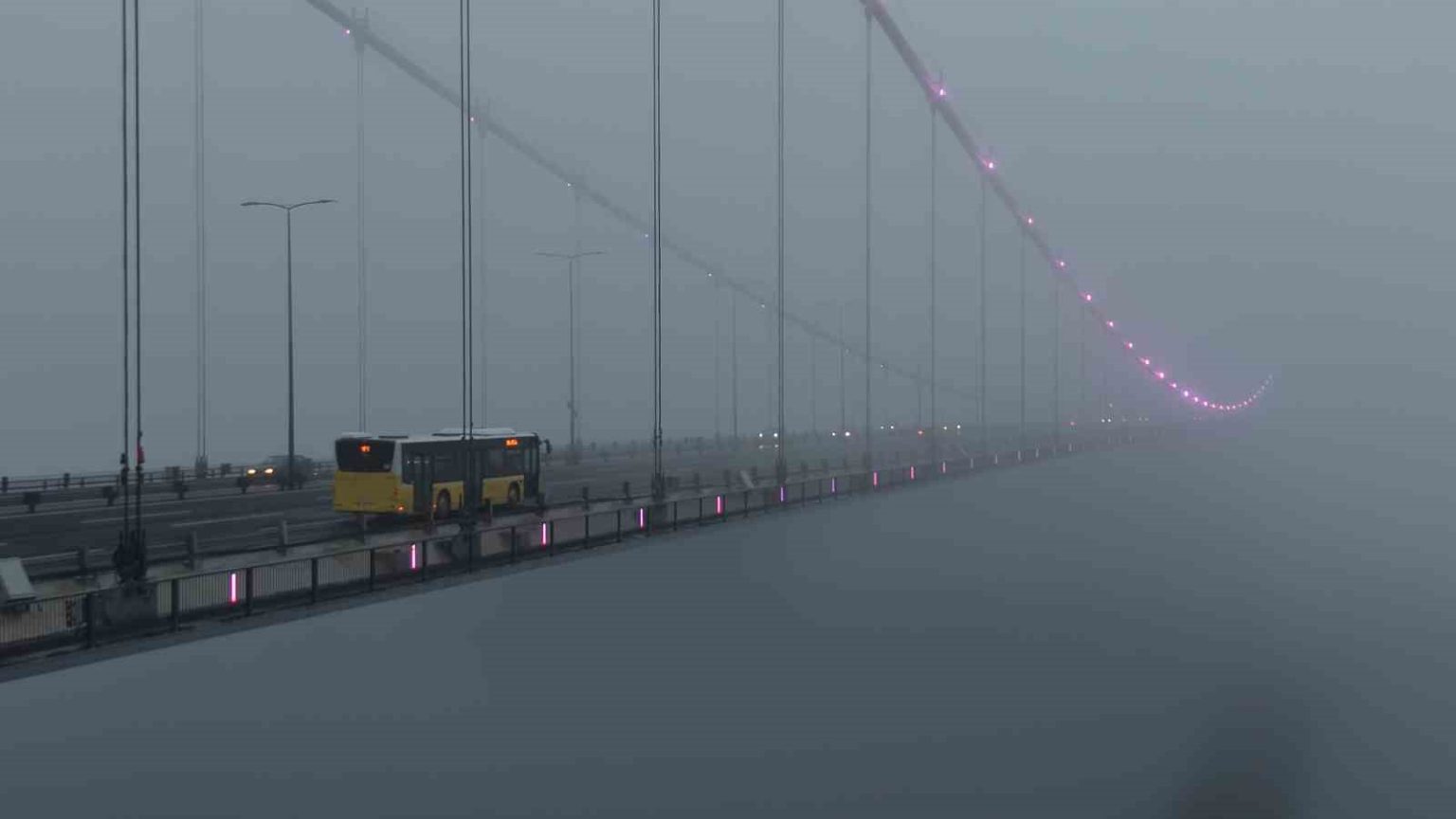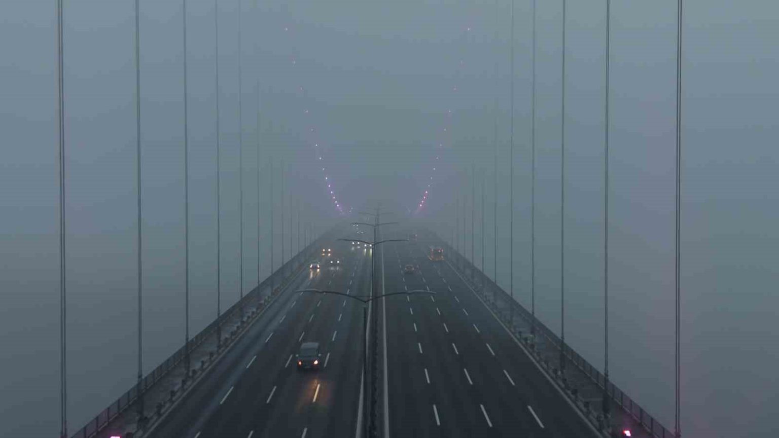 İstanbul’da sabah saatlerinde etkili olan yoğun sis, özellikle İstanbul Boğazı çevresinde görüş mesafesini ciddi şekilde düşürdü. Şehrin simgelerinden biri olan Fatih Sultan Mehmet Köprüsü (FSM), sis bulutları arasında adeta kayboldu.