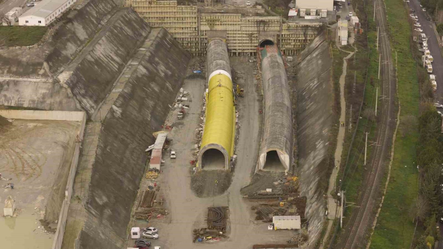 Ispartakule ve Halkalı mevkilerinde yer alan tünellerin inşaat alanları havadan dron ile görüntülenirken, bir gidiş bir geliş olmak üzere iki ayrı tüpten oluşan tünellerin büyük bir kısmı tamamlanmış durumda. Tüneller, gölün en dar kısmından geçerek kesintisiz bir demiryolu bağlantısı sağlayacak.