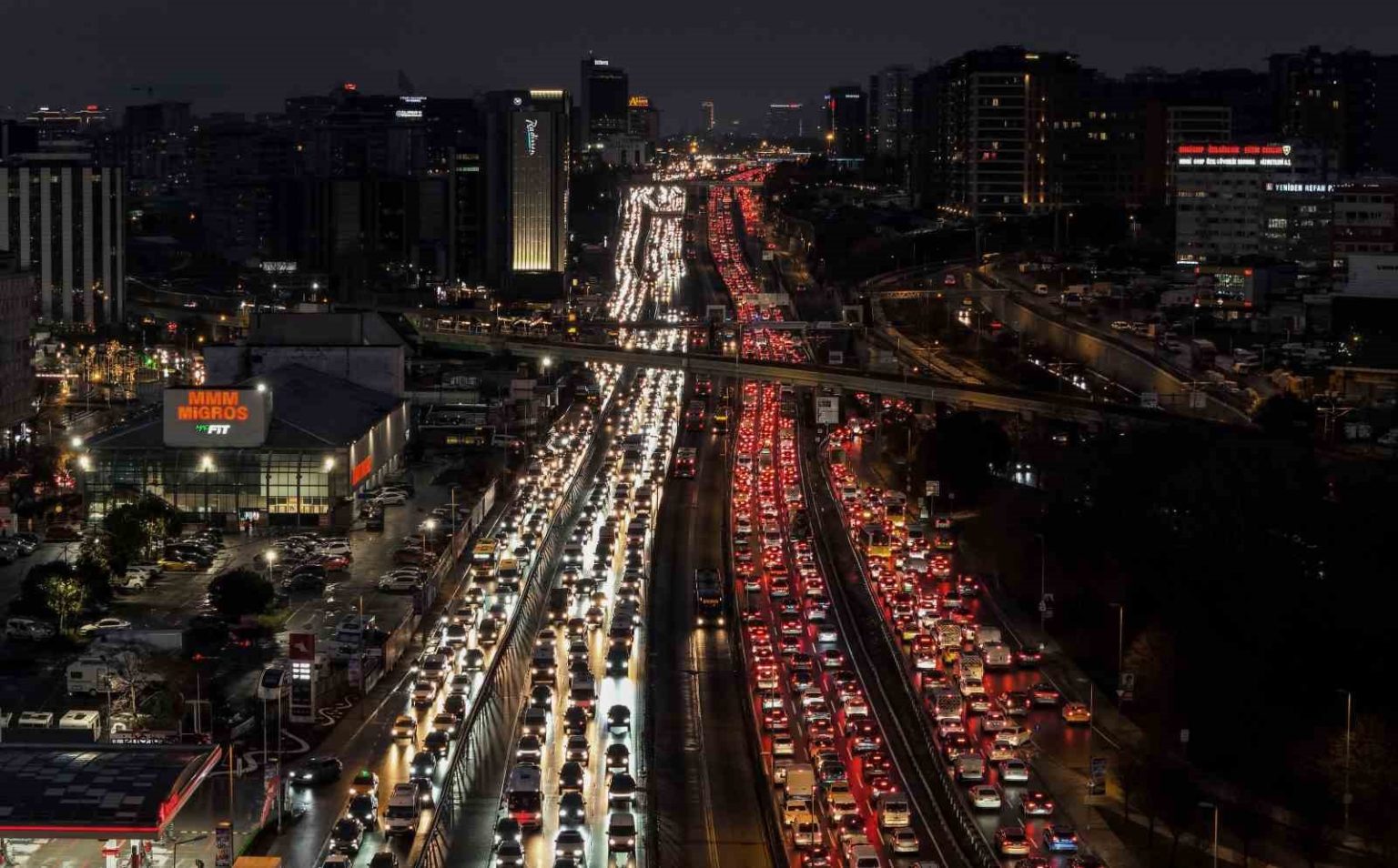 Okulların kapalı olması nedeniyle rahatlaması beklenen trafik, son hafta yüzde 85’leri gördü. Çarşamba günü İstanbul’da trafik yoğunluğu yüzde 85’e ulaşırken, perşembe günü de aynı seviyede ölçüldü. Haftanın son gününde ise yağmurun etkisiyle trafik yoğunluğu yüzde 87’ye kadar yükseldi. Hafta sonları akşam saatlerinde trafik genellikle daha sakin seyrederken, cumartesi akşamı yoğunluk yüzde 83’e ulaştı. Trafik yoğunluğuna ilişkin veriler, kent genelinde ana arterlerde ve bağlantı yollarında hareketliliğin gün boyu yüksek seyrettiğini ortaya koyuyor. Havadan çekilen görüntülerde ise D-100 kara yolunda iş çıkış saatlerinde kilometrelerce uzanan araç kuyrukları, trafik yoğunluğunun ulaştığı boyutu gözler önüne seriyor.