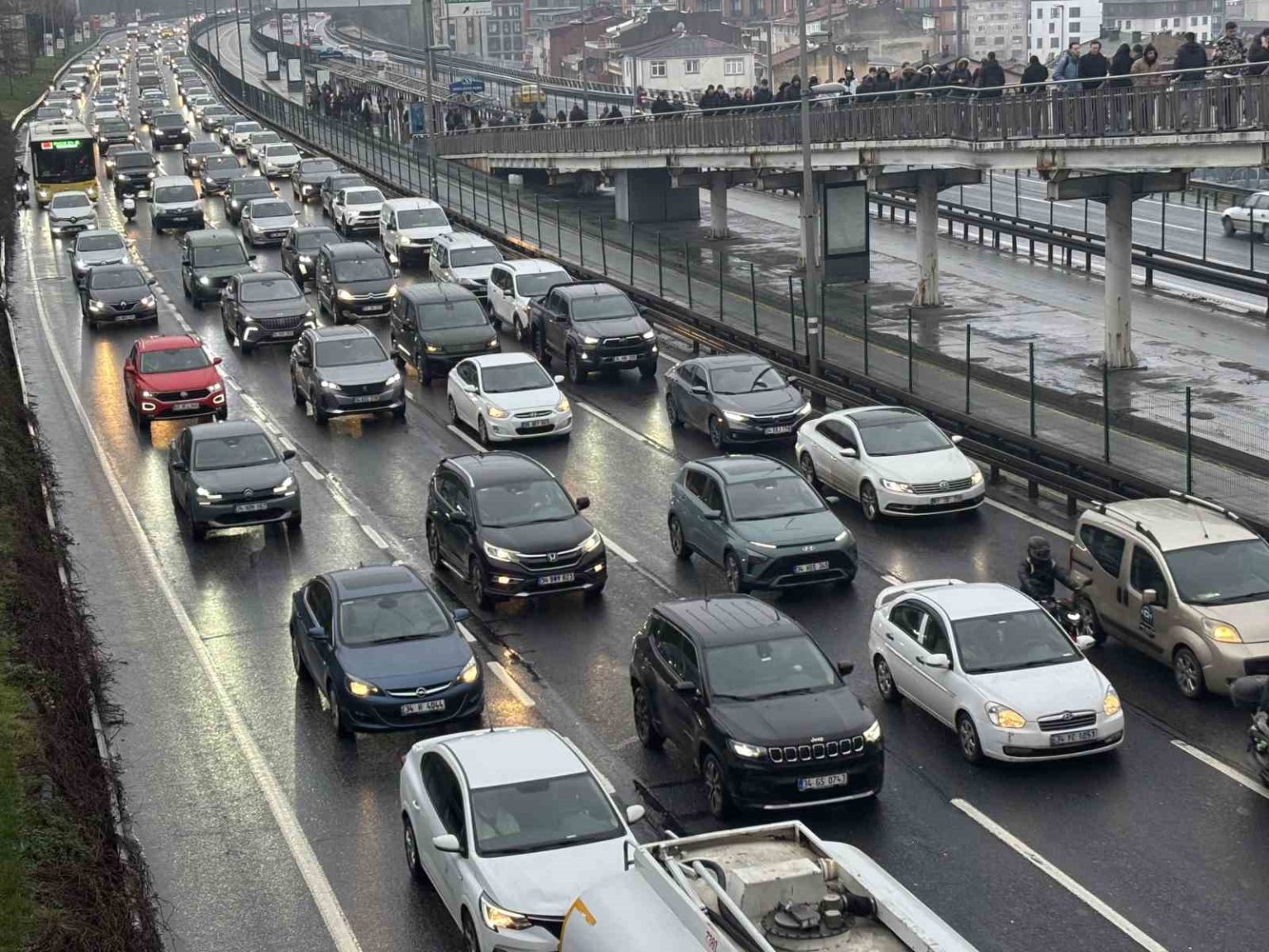 Vatandaşlar işe gitmek için metrobüs duraklarında yoğunluk oluştururken, araç trafiği yoğunluğu nedeniyle bazı noktalarda sürücülerin yavaş ilerlediği görüldü.
