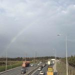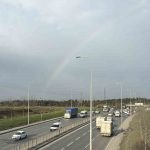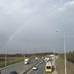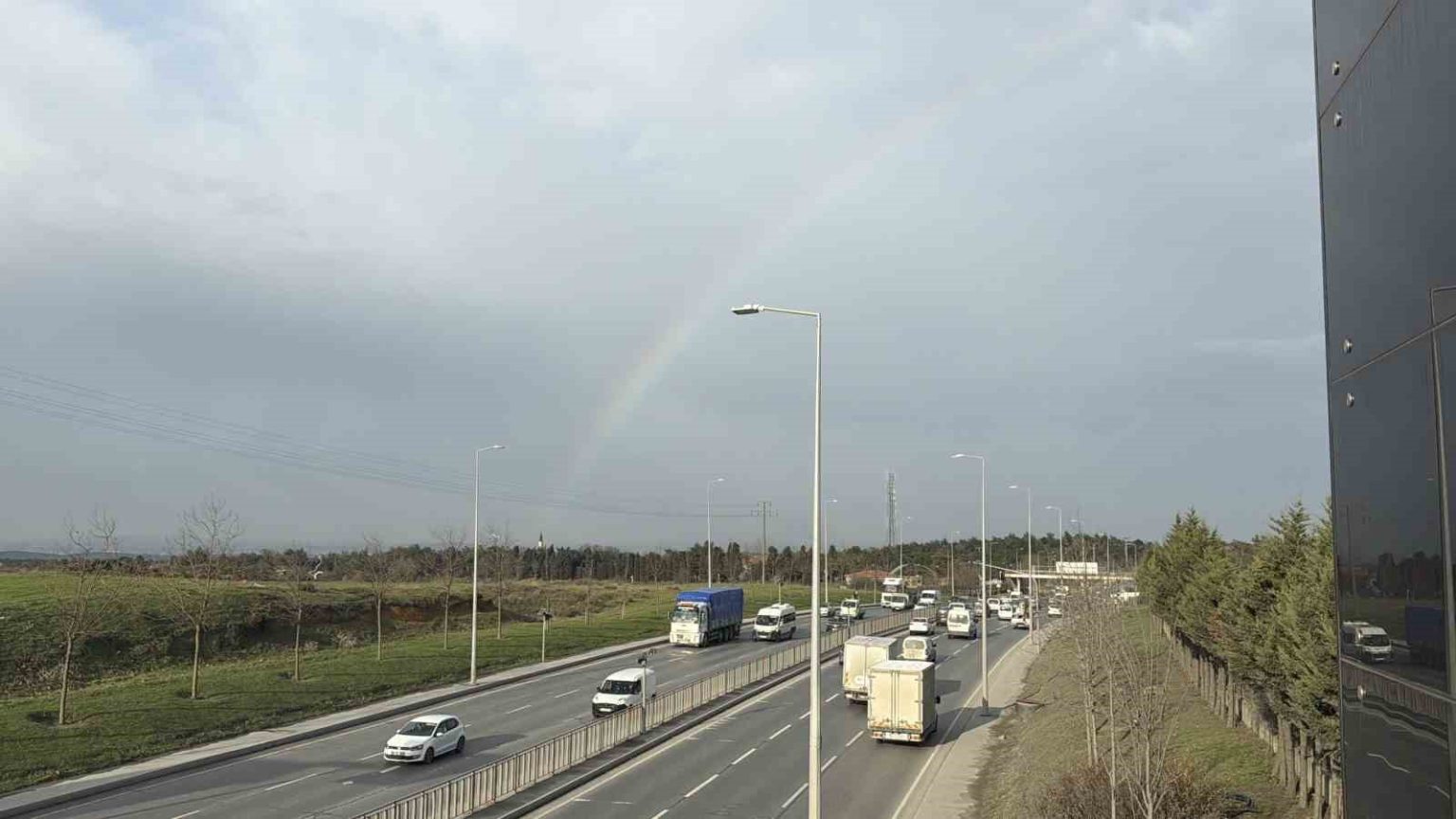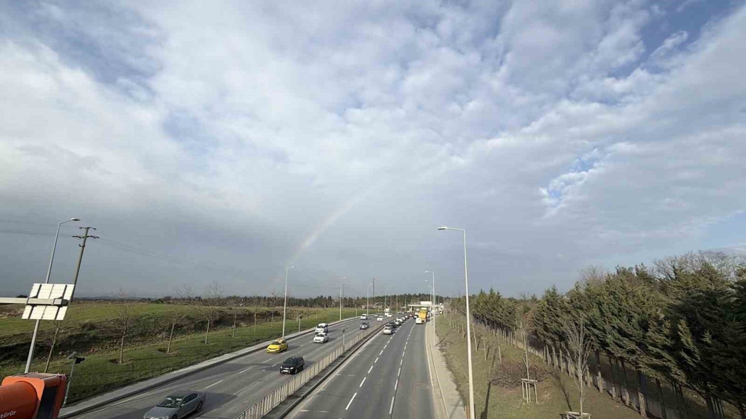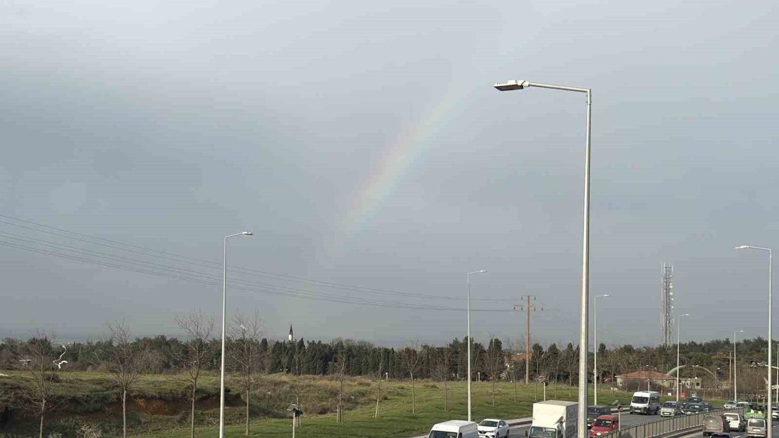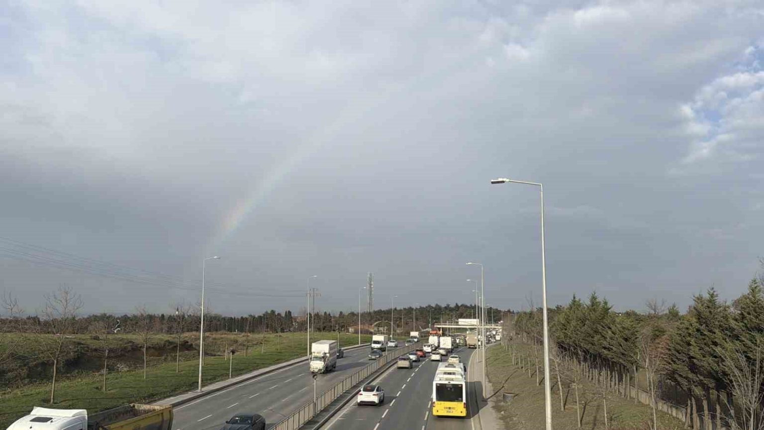 İstanbul’da etkili olan kısa süreli yağışın ardından gökyüzünde beliren gökkuşağı, trafikteki sürücülere adeta görsel şölen sundu.