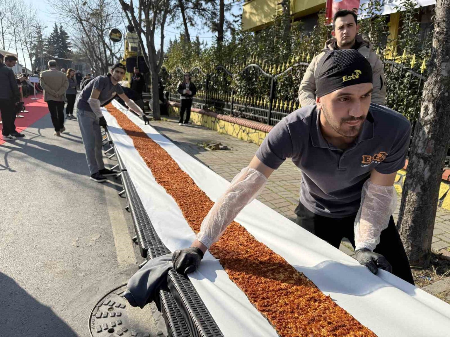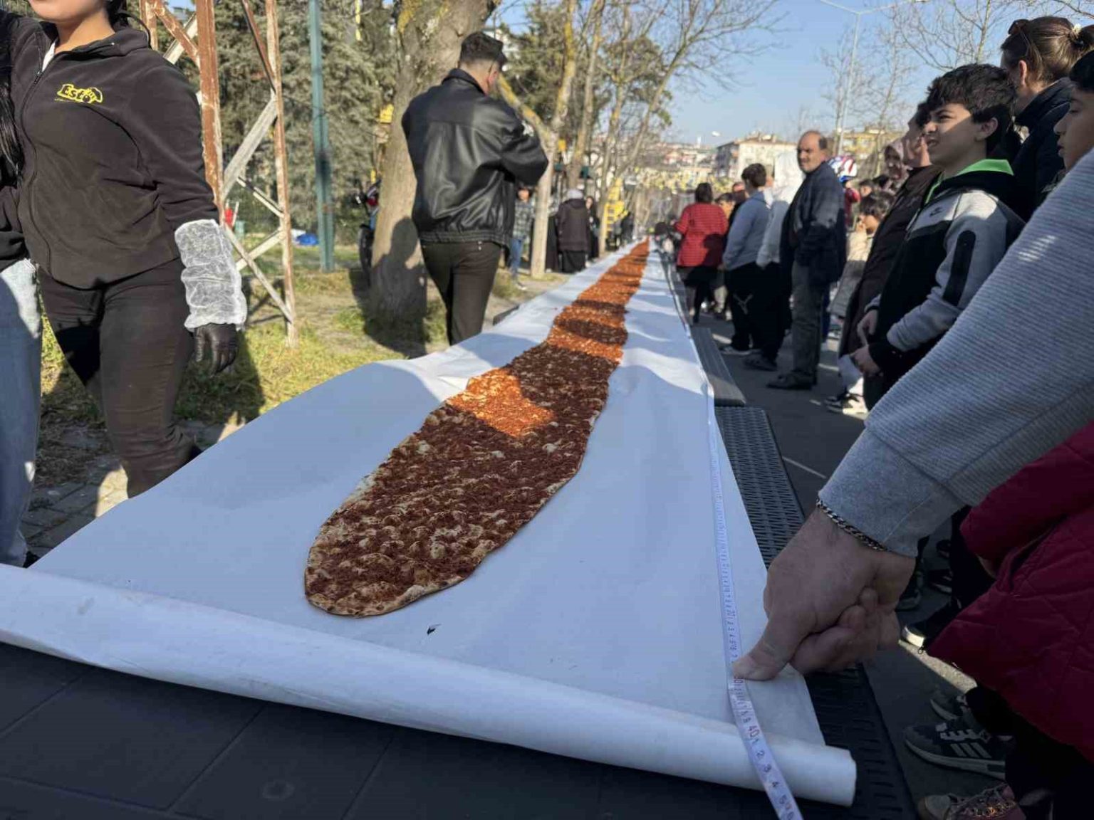 İstanbul’da lahmacun rekoru: 63 metrelik dev lahmacun Guinness’e girdi