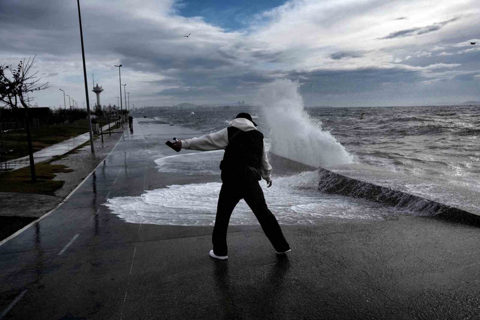 İstanbul’da iki gündür devam eden lodos ve fırtına, sahil şeridinde dev dalgalara neden oldu. Dalgaların kıyıyı aşmasıyla birlikte bazı bölgelerde yaya geçişleri güçleşti. Özellikle Yenikapı sahilinde etkisini artıran lodos nedeniyle dev dalgalar metrelerce yükselerek sahil bandını kapladı. Dalgaların zaman zaman yürüyüş yoluna ulaşması nedeniyle vatandaşlar sahilden uzaklaşmak zorunda kaldı. Sahilde bulunan bazı vatandaşlar ise fotoğraf çekerken dalgaların aniden yükselmesi sonucu ıslanmaktan kaçamadı.