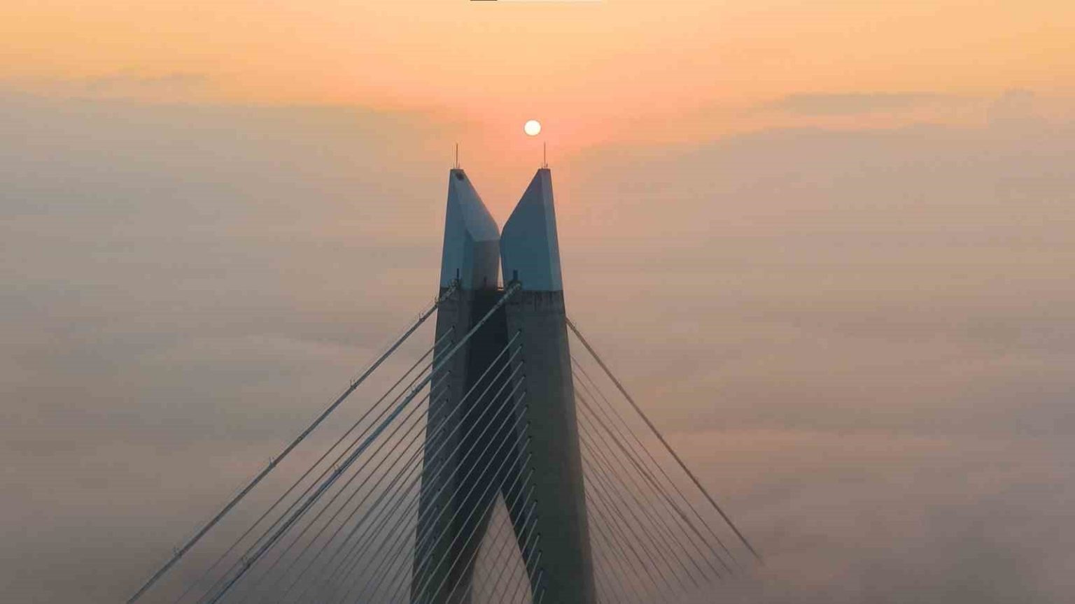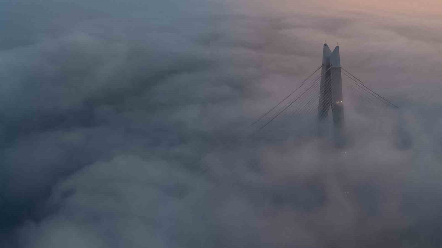 İstanbul’un simge yapılarından Yavuz Sultan Selim Köprüsü, gün doğumu ve sisin oluşturduğu eşsiz manzarayla adeta görsel şölen sundu. Sabahın ilk ışıklarıyla birlikte köprü çevresini saran yoğun sis, ortaya mest eden görüntüler çıkardı.