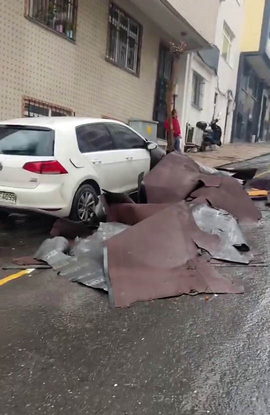 İstanbul’da şiddetli lodos ve yağış etkili oluyor: Çatılar uçtu, araçlar zarar gördü