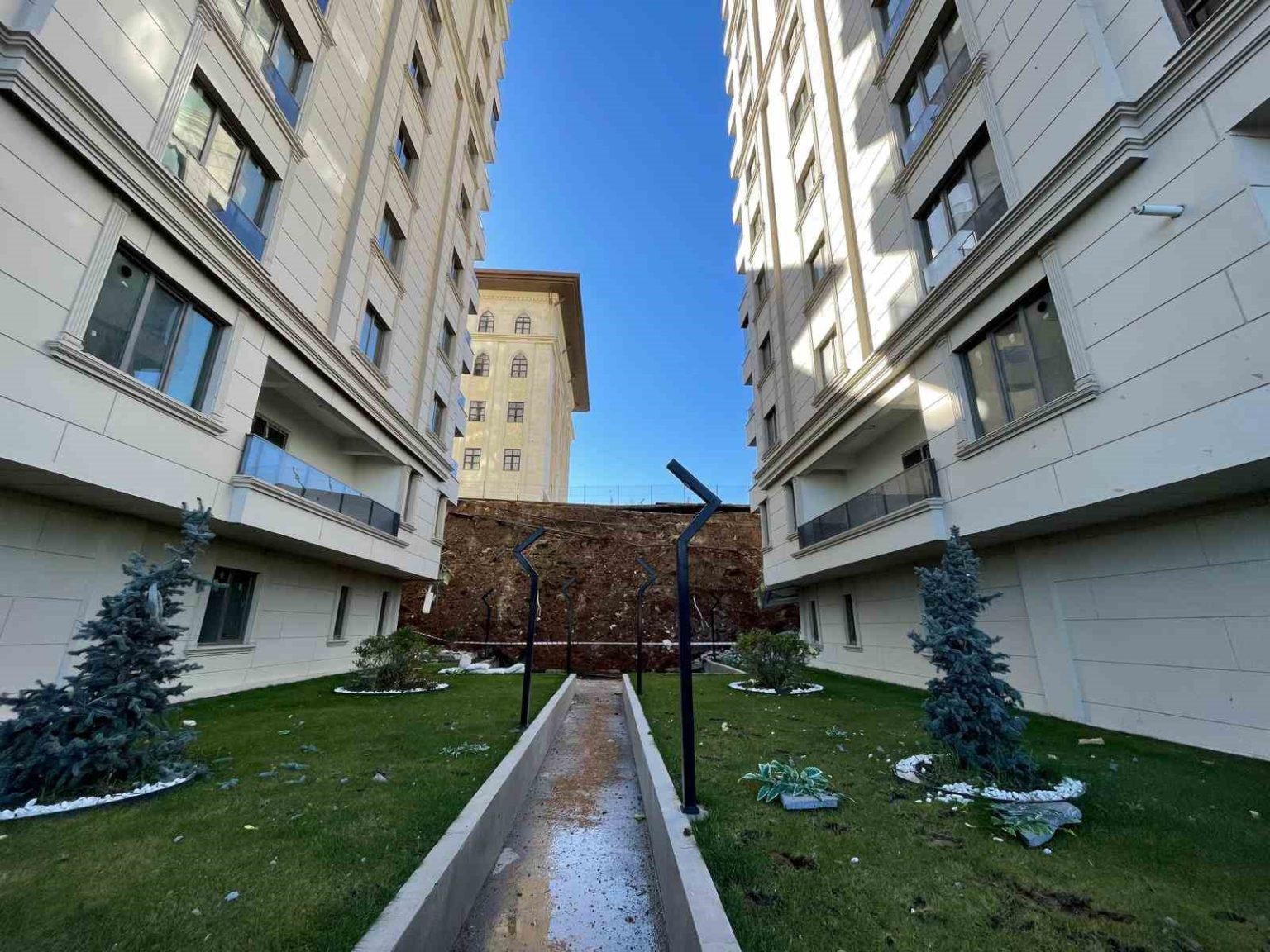 Şanlıurfa’nın Karaköprü ilçesinde istinat duvarı çöken sitedeki 4 daire hasar gördü.