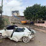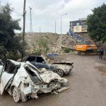 Hatay’da çöken istinat duvarının altında kalarak hurdaya dönen araçlar ekiplerin çalışmalarıyla kurtarıldı.