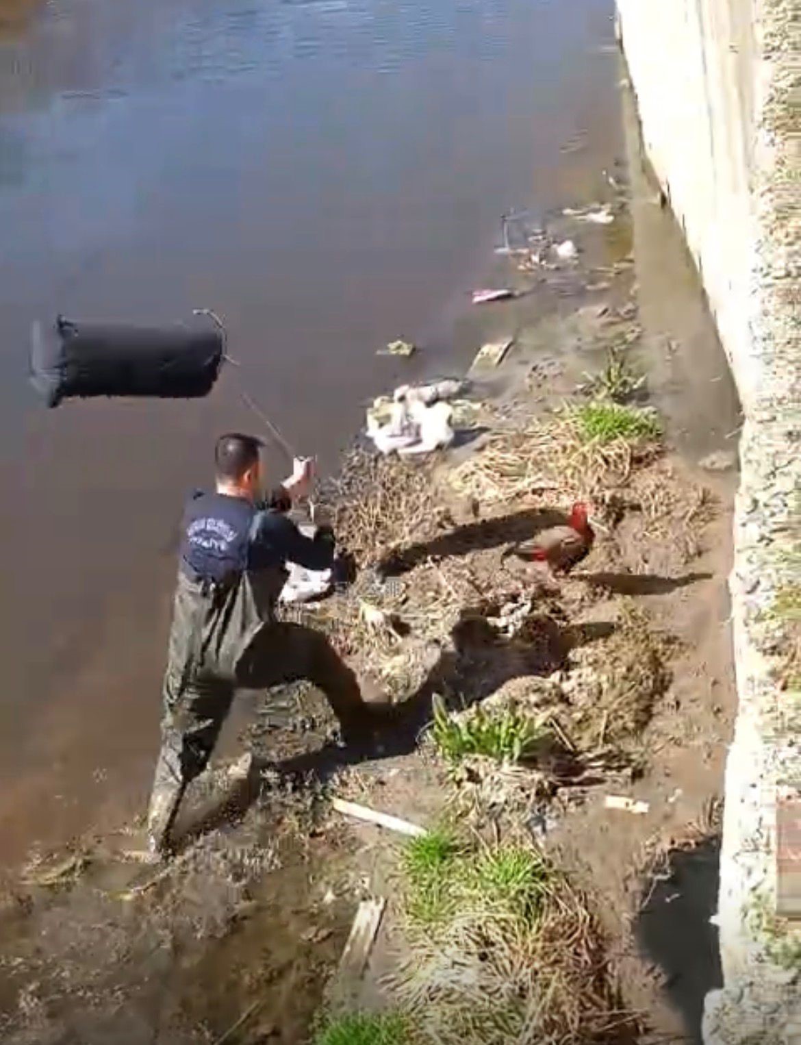 İtfaiye ekipleri dereye düşen horoz için seferber oldu