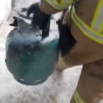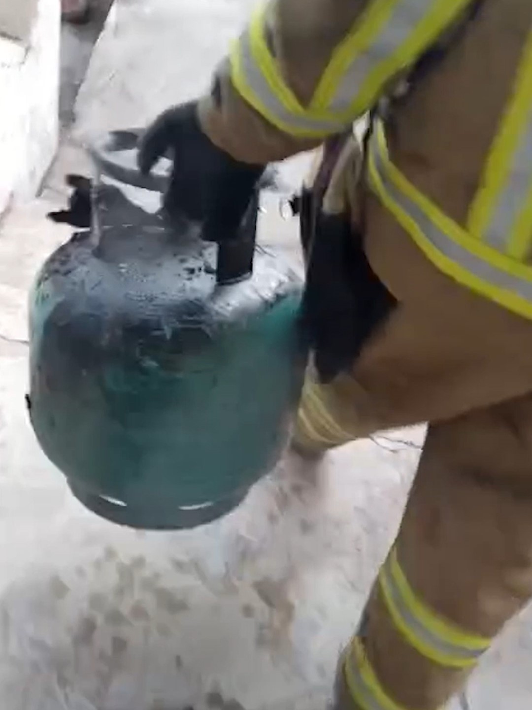 İtfaiyeci gaz sızdıran tüpü eliyle taşıyarak facianın önüne geçti