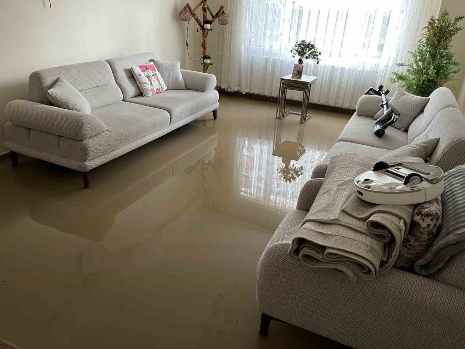 “Yağmur yağarken balkondaydım, içeri girecekken suyun geldiğini fark ettim. Bir anda mutfaktan içeri akmaya başladı, havlularla durdurmaya çalıştım ama başarılı olamadım. O anki korkuyla 112’yi aramak istedim ama elim ayağıma dolandı. Televizyonlarda izlerken başkaları adına üzülüyorduk ama yaşamak çok farklıymış evim mahvoldu.”