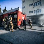 İtfaiye Dairesi Başkanlığı ekipleri tarafından Buca’da bulunan Rüştü Ünsal Polis Meslek Yüksekokulu’nda yangın tatbikatı gerçekleştirildi. Tatbikat senaryosuna göre, 4 katlı binanın zemin katında yer alan bir derslikte elektrik hatlarından kaynaklanan bir yangın çıktı. Dumanların hızla binayı sarması üzerine vakit kaybetmeden 112 Acil Çağrı Merkezi’ne haber verildi. İhbar üzerine kısa sürede olay yerine ulaşan itfaiye ekipleri, yangına hızla müdahale ederek alevleri kontrol altına almayı başardı.
