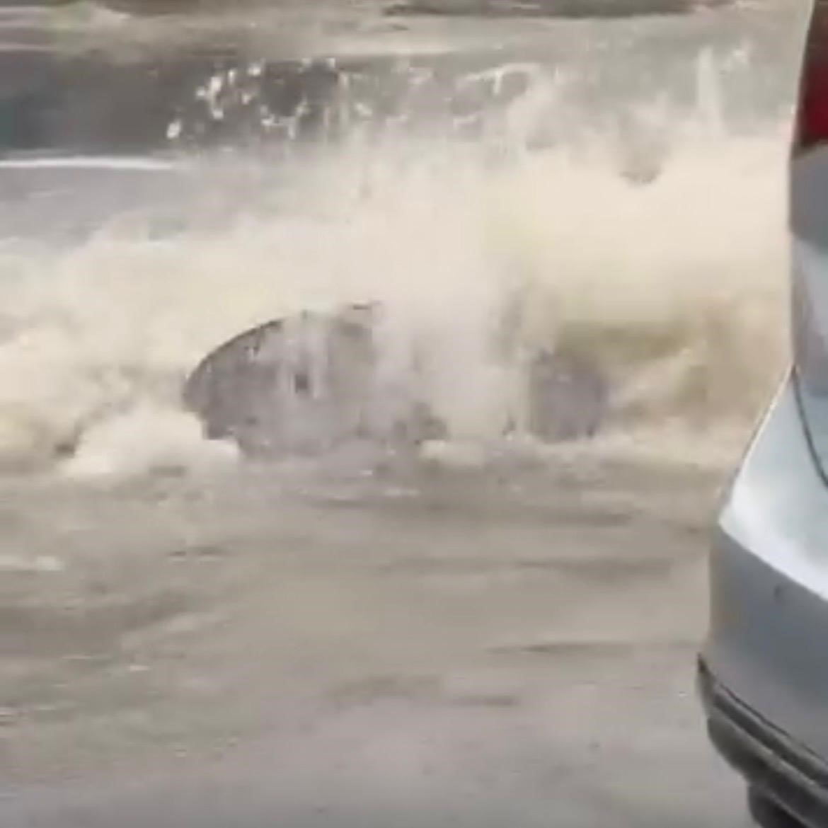 İzmir’de öğle saatlerinden itibaren etkili olan sağanak yağış ve fırtına hayatı olumsuz etkiledi. Merkez ilçelerde cadde ve sokaklar göle dönerken, bir vatandaşın suyun altında kalan çukura düştüğü anlar güvenlik kamerasına yansıdı.