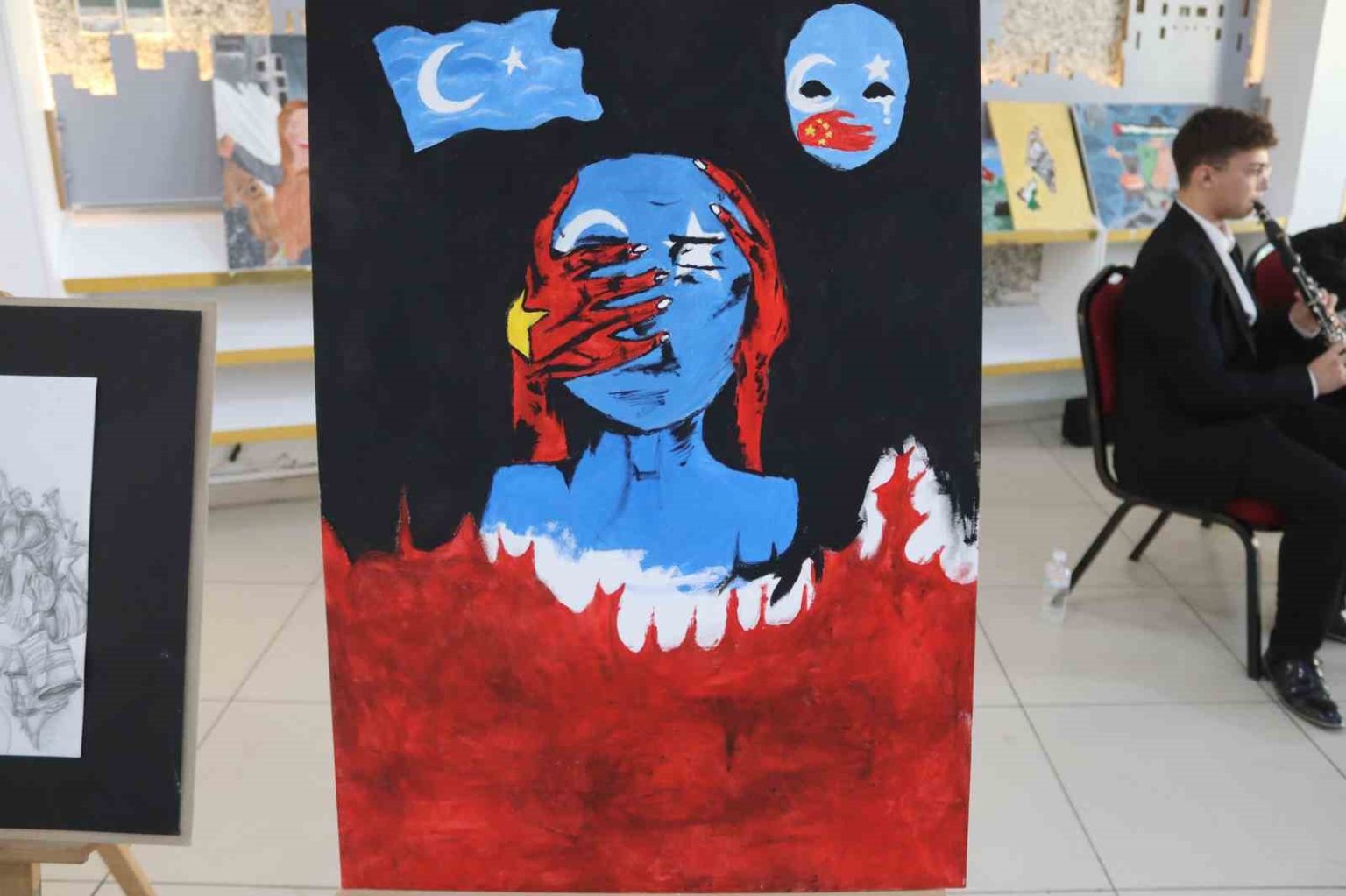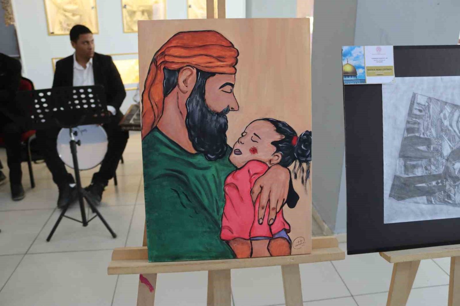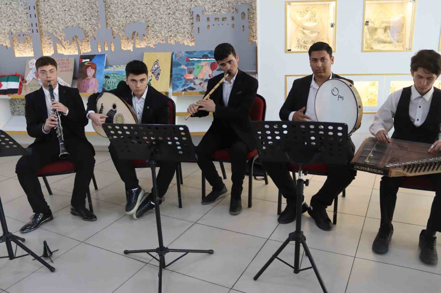 Programın en dikkat çeken bölümlerinden biri, öğrencilerin Gazze’de şehit düşen çocuklar için hazırladığı resim sergisi oldu. Protokol üyeleri ve davetliler tarafından gezilen sergide, çocukların gözünden savaşın acı yüzü ve masumiyetin yansımaları incelendi.