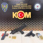 İzmir’de polis ekiplerinin organize suç örgütlerine yönelik düzenlediği operasyonda, hakkında kesinleşmiş hapis cezası bulunan bir şüpheli yakalandı, şahsın saklandığı adreste otomatik silah ele geçirildi.