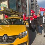 İzmir’de taksicilerden Türk bayraklı konvoy