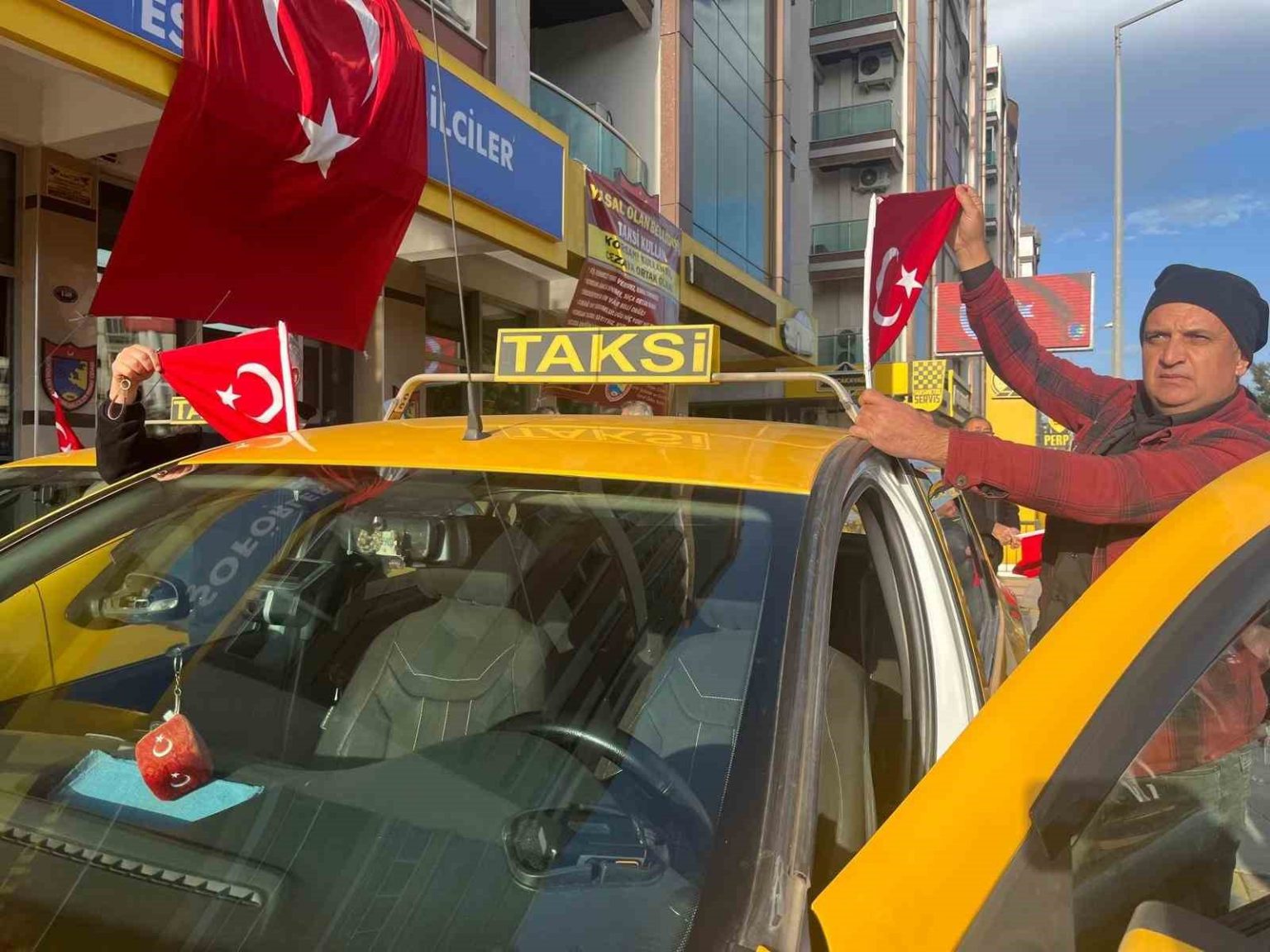 İzmir’de taksicilerden Türk bayraklı konvoy