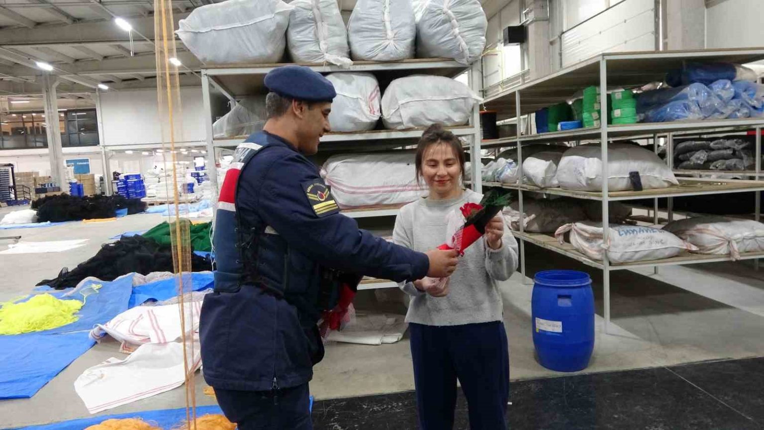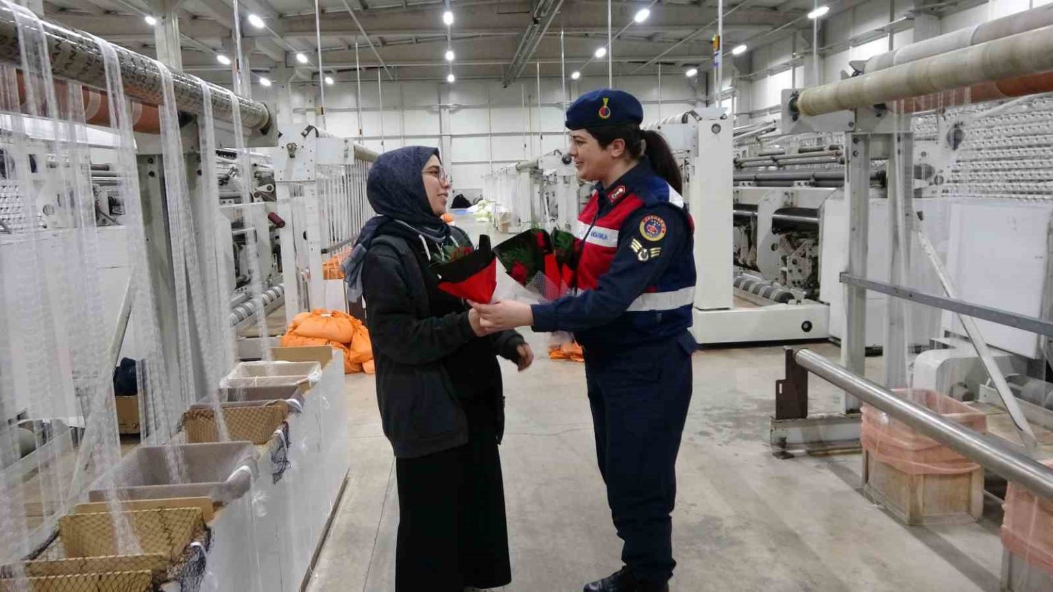 Jandarma 8 Mart Kadınlar Günü dolayısıyla fabrika işçisi kadınları unutmadı
