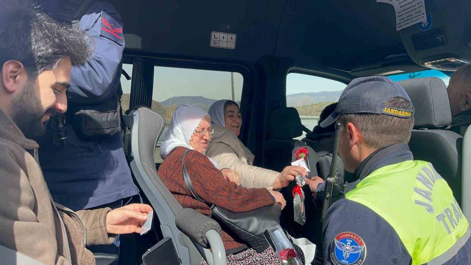 Elazığ’da İl Jandarma Komutanlığı ekipleri tarafından 8 Mart Dünya Kadınlar günü dolayısıyla, trafikte araç kullanan kadın sürücü ve yolculara karanfil hediye edildi.