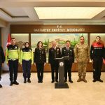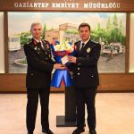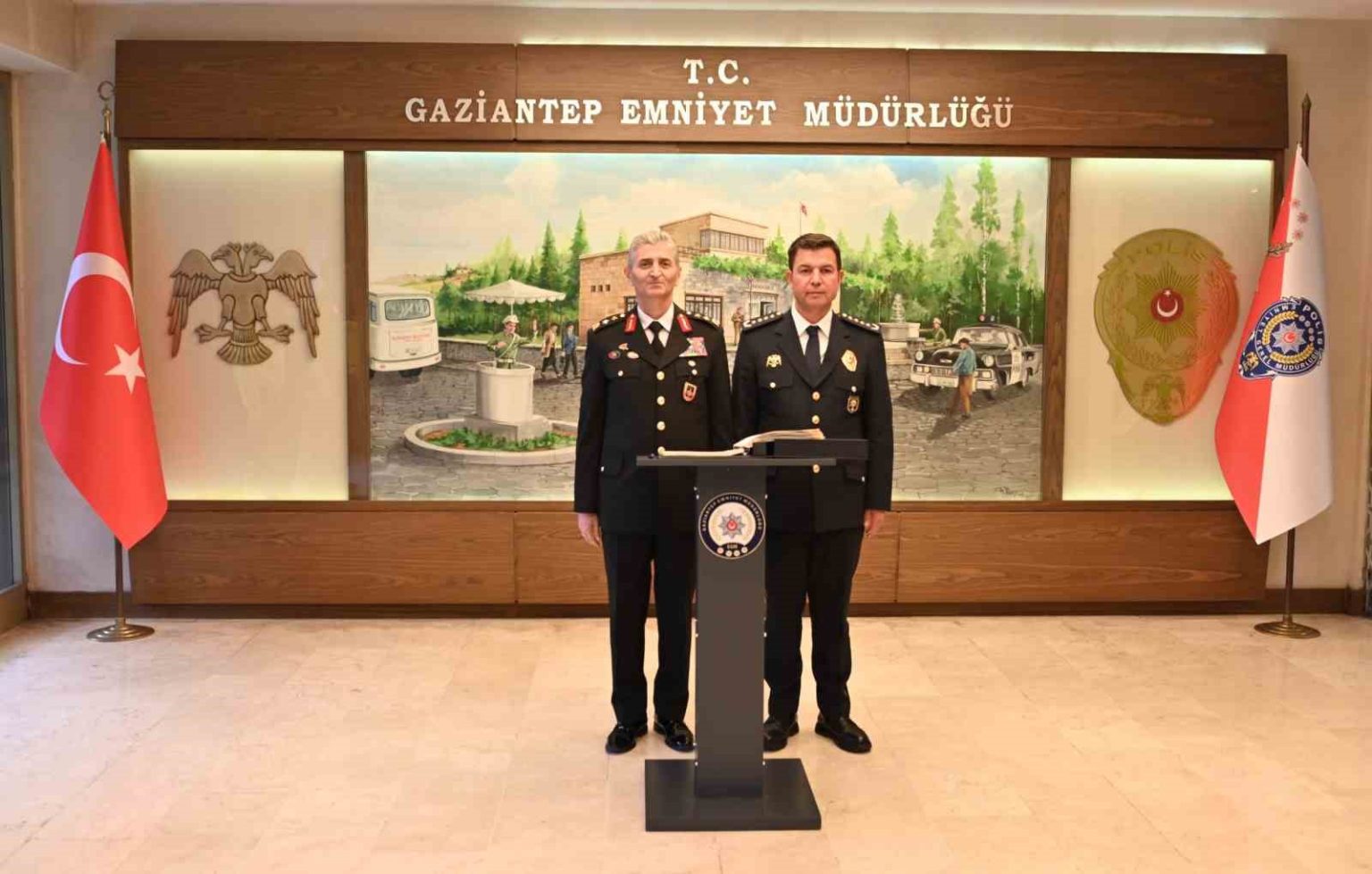 Gaziantep İl Jandarma Komutanı Tümgeneral Halil Şen ve beraberindeki personeli, Türk Polis Teşkilatı’nın 181’inci kuruluş yıl dönümü münasebetiyle Gaziantep İl Emniyet Müdürü Celal Özcan’ı makamında ziyaret etti. Tümgeneral Halil Şen, ziyarette Türk Polis Teşkilatı’nın 181’inci kuruluş yıl dönümünü kutlayarak ülkenin huzur ve güvenliği için omuz omuza görev yapan iki kurumun birlik ve beraberliğine vurgu yaptı.