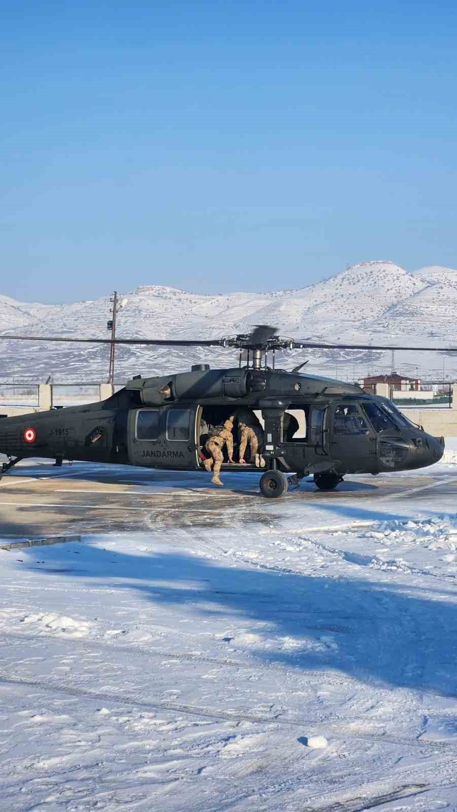 Durumun yakınları tarafından 112 Acil Çağrı Merkezi’ne bildirilmesi üzerine, köy yollarının kar nedeniyle kapalı olması sebebiyle jandarma ekipleri tarafından hava destekli kurtarma operasyonu başlatıldı.