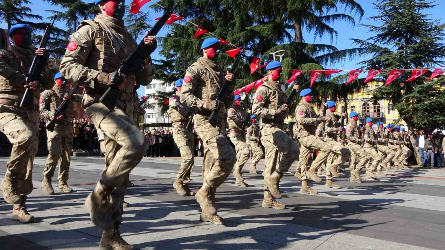 Mehteran ekibinin sergilediği kahramanlık türkülerinin ardından Trabzon Komando Taburu bir gösteri sundu. Mehmetçiğin tüfekli gösterisi adeta nefes keserken, alanı dolduran vatandaşlar o anları cep telefonlarına kaydetti.