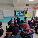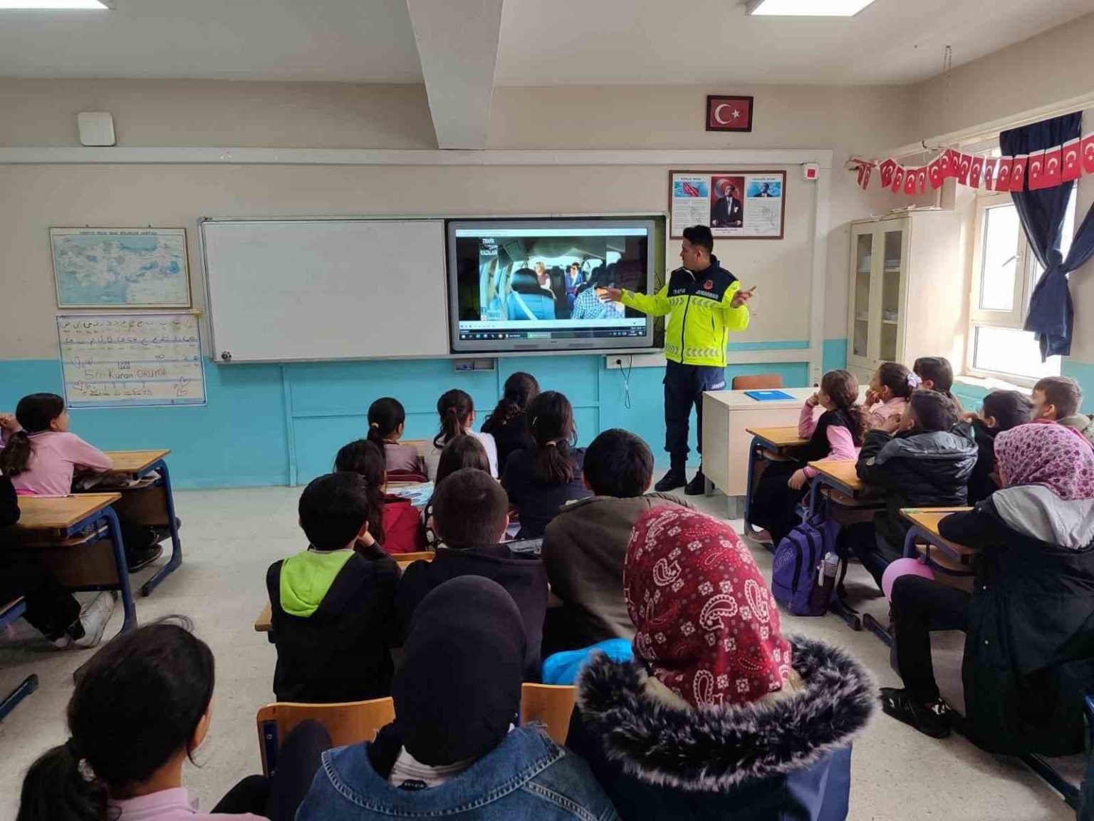 trafik jandarmasının görevleri, trafik işaret ve levhalarının anlamları, araçlarda güvenli yolculuk ve emniyet kemeri kullanımı gibi konularda bilgilendirme yapılmıştır” ifadelerine yer verildi.