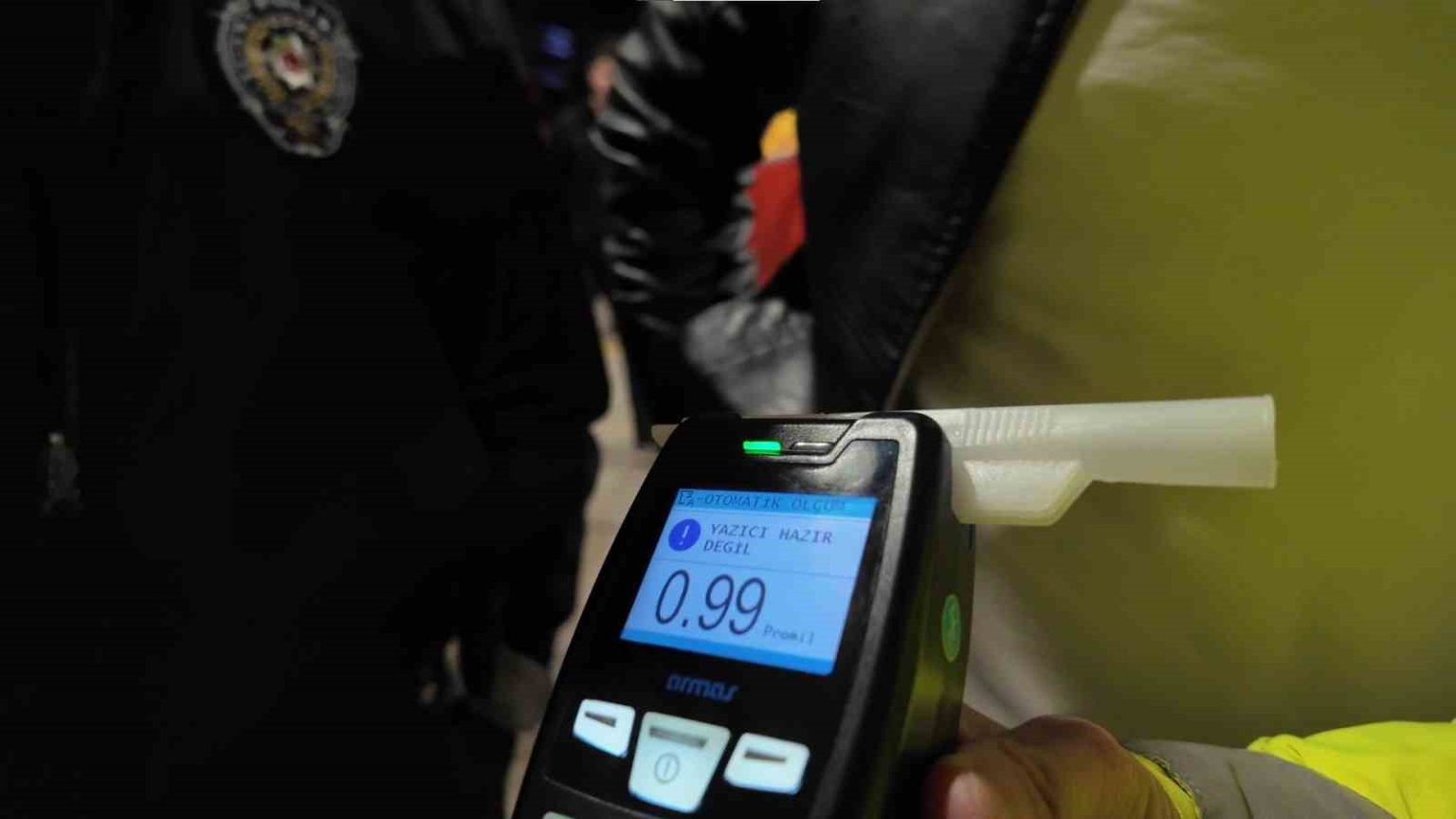 Edinilen bilgilere göre, denetim noktasında durdurulan sürücünün yapılan kontrollerde alkollü olduğu tespit edildi. İşlem yapmak isteyen polis ekiplerine direnen sürücü, görevli ekiplere sözlü tehditlerde bulunarak uygulamayı engellemeye çalıştı. Ekiplerin uzun uğraşları sonucu ikna edilen sürücü, alkolmetreyi üflemeyi kabul etti.