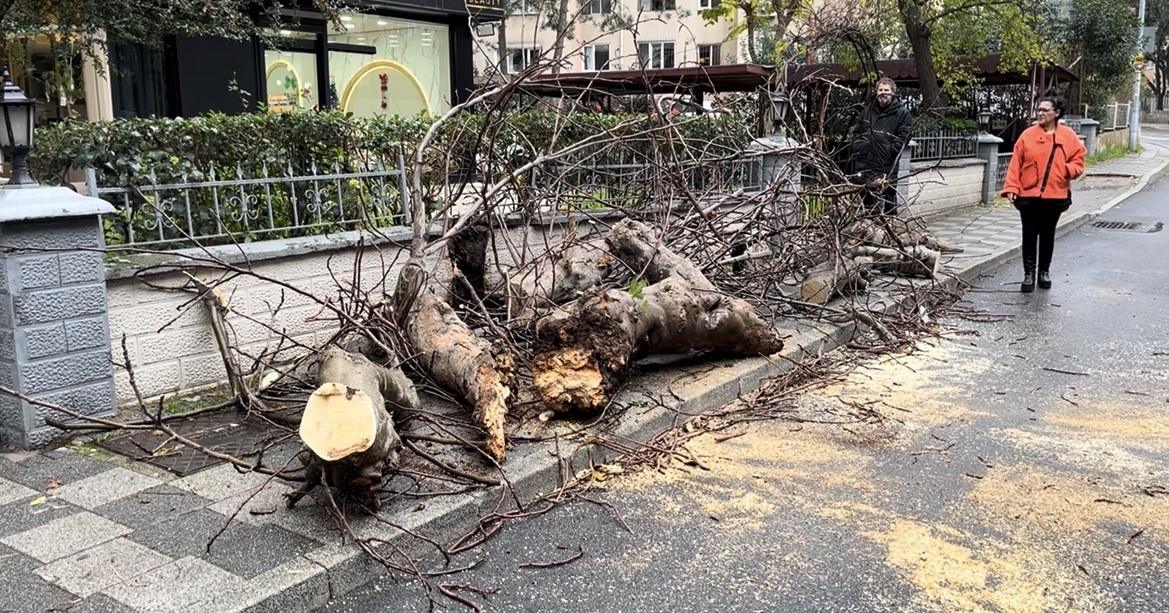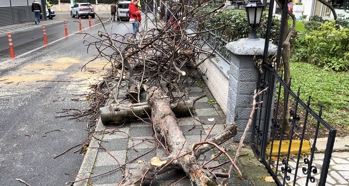 Kadıköy’de yola devrilen ağaç paniğe neden oldu