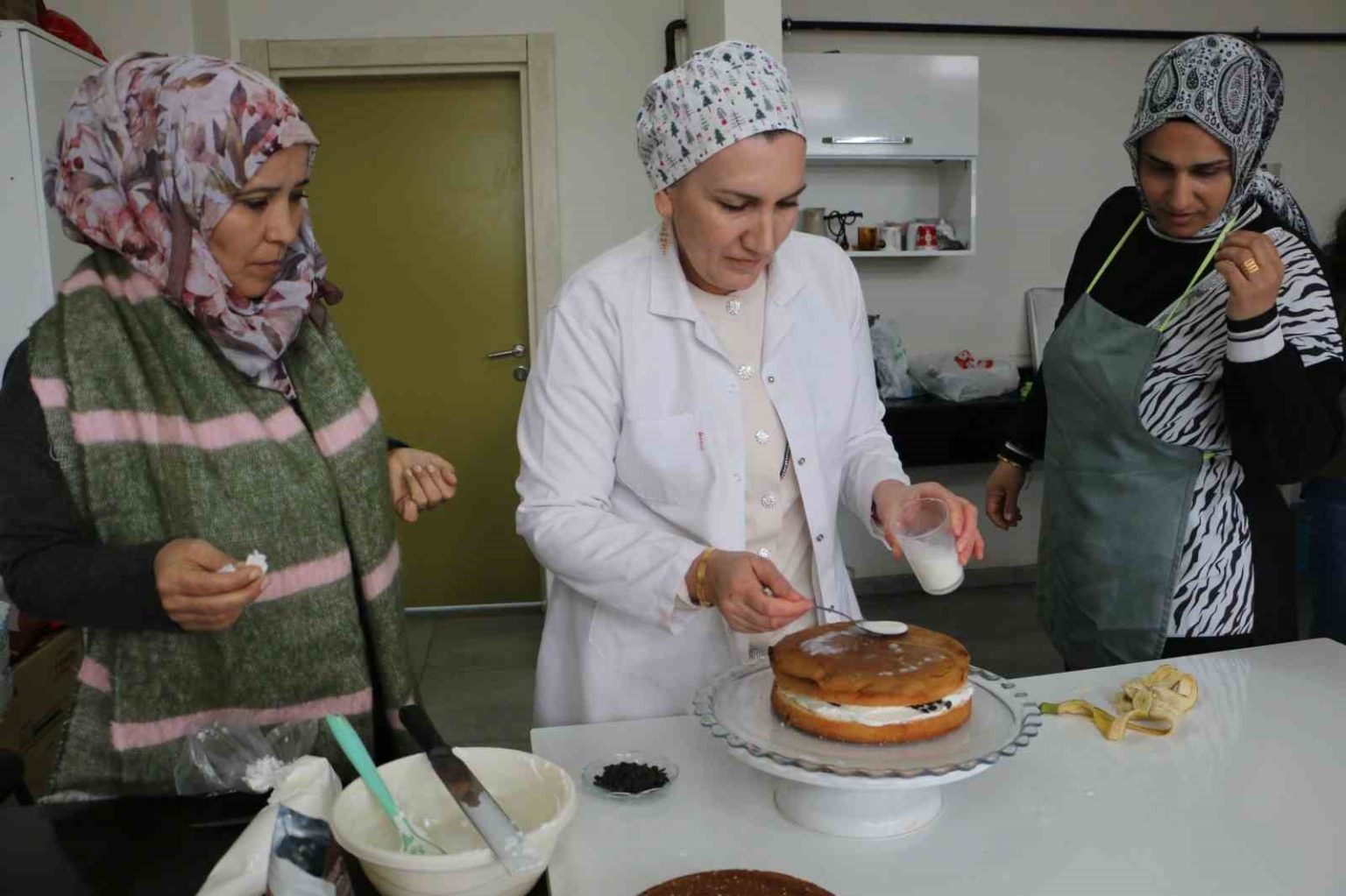 “Bir aile gibi oluyoruz. Hepsinin çocukları benim çocuklarım gibi oluyor. Hepsi benim kardeşlerim, kızlarım gibi. Bu yüzden birbirimizden daha fazla verim alıyoruz. Aralarında iş yeri açanlar var, iş yerlerinde çalışanlar var. Özellikle tatlıcılık ve restoran işletmeciliği sektöründe birçok arkadaş benden eleman istiyor. Yetiştirilmiş eleman talep ediyorlar. Ben de kursiyerlerimizi yönlendiriyorum. Şu anda birçok kursiyerimiz iş yerlerinde çalışıyor, evlerine ekmek götürüyor ve kendi ayakları üzerinde duruyor. Bu da beni çok mutlu ediyor, gururlandırıyor. Biz zaten sık sık alan taramasına çıkıyoruz. Evlerinde oturan kadınlarla konuşuyoruz. Kimisi ’Eşim izin vermiyor’, kimisi ’Bu saatten sonra ne yapacağım’ diyor. Biz onlara dokunuyoruz ve her şeyi anlatıyoruz. ’Evet, evlenmişsiniz, çoluk çocuğunuz var ama hayat bitmiş değil. Hayat sadece bundan ibaret değil’ diyoruz. ’Kursa gelin’ diyoruz. Kursa geliyorlar ve burada sadece yiyecek içecek öğrenmiyorlar. Her şeyi öğreniyorlar.”