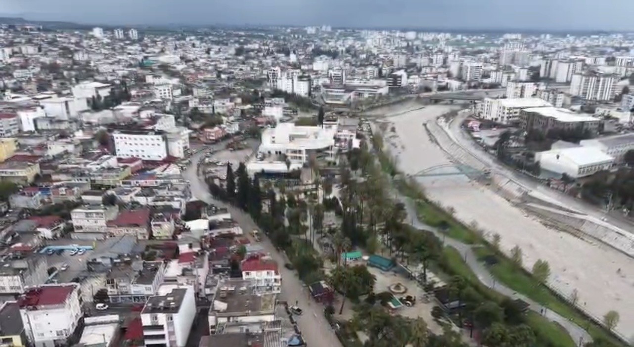 Osmaniye’nin Kadirli ilçesinde etkili olan sağanak yağışın ardından taşan Bülbül Deresi’nin yol açtığı sel felaketinin boyutu, gündüz saatlerinde havadan görüntülendi.