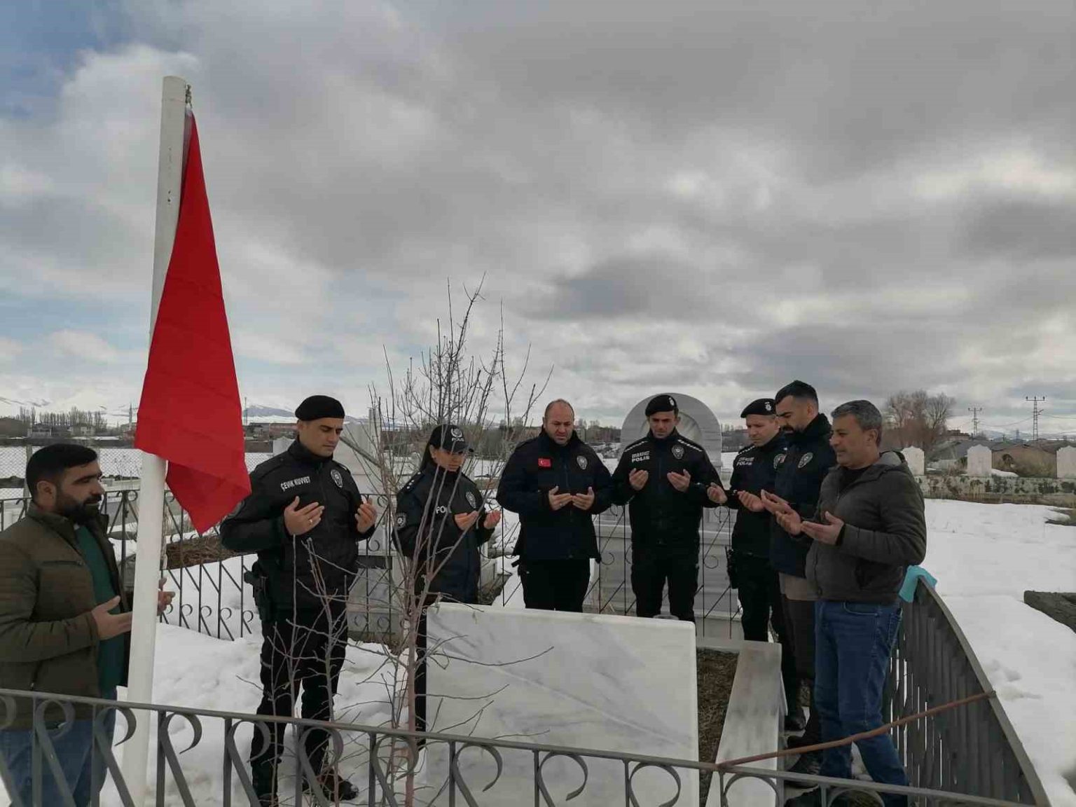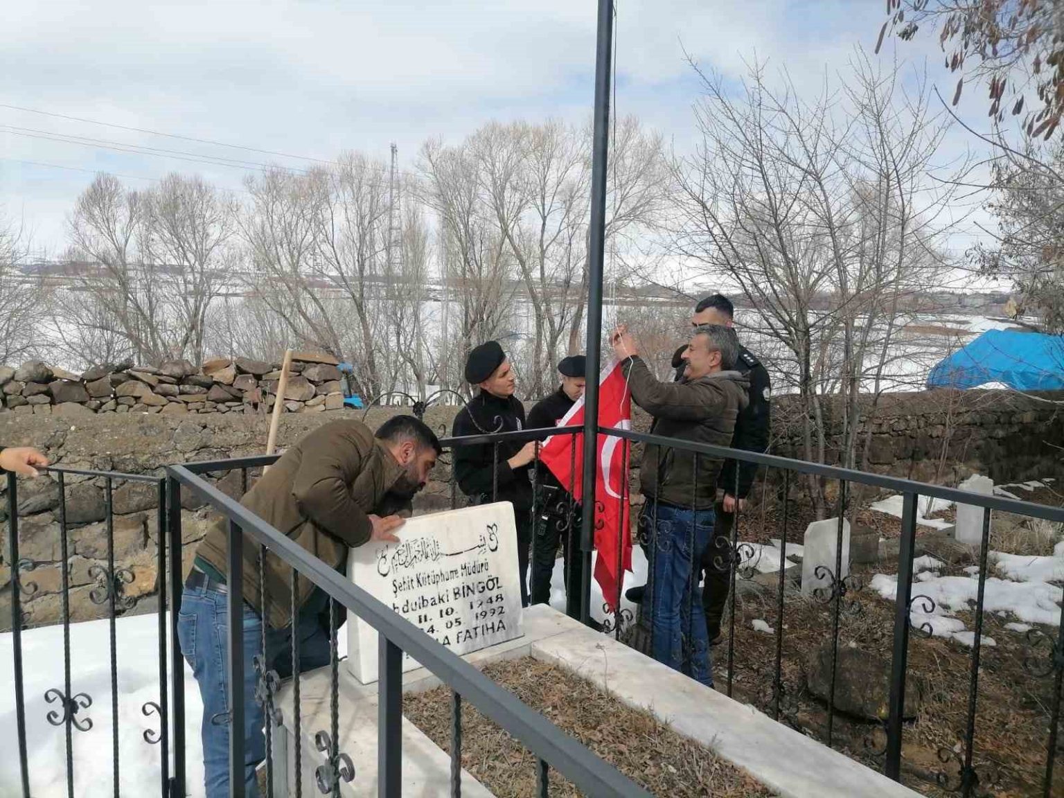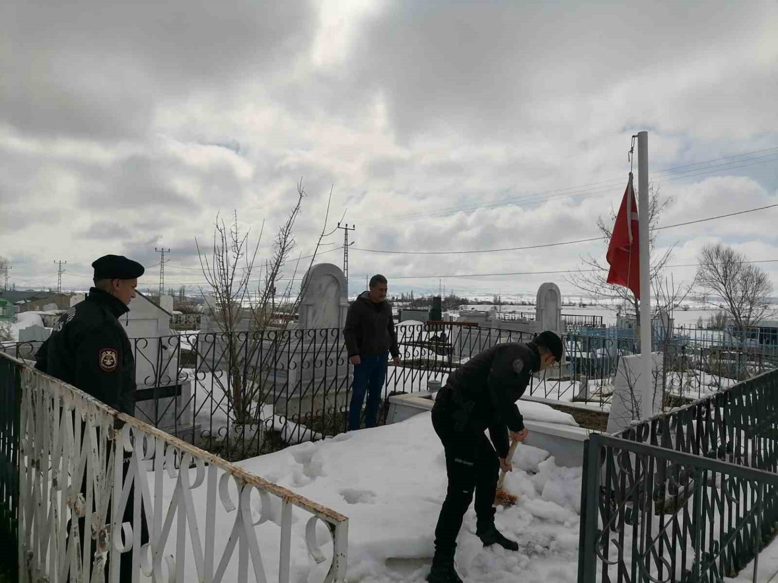 Hınıs İlçe Emniyet Müdürlüğü personeli sorumluluk bölgelerindeki şehitlere ait 3 kabristanın bakımı ve temizliğini yaparak şehitlerimizin aziz hatırasına sahip çıktı. Etkinlik kapsamında ayrıca Şehit Jandarma Komando Er Osman Bağ’ın kabristanındaki değiştirilen bayrak, annesi Gülbahar Bağ’a teslim edilerek hayır duası alındı.