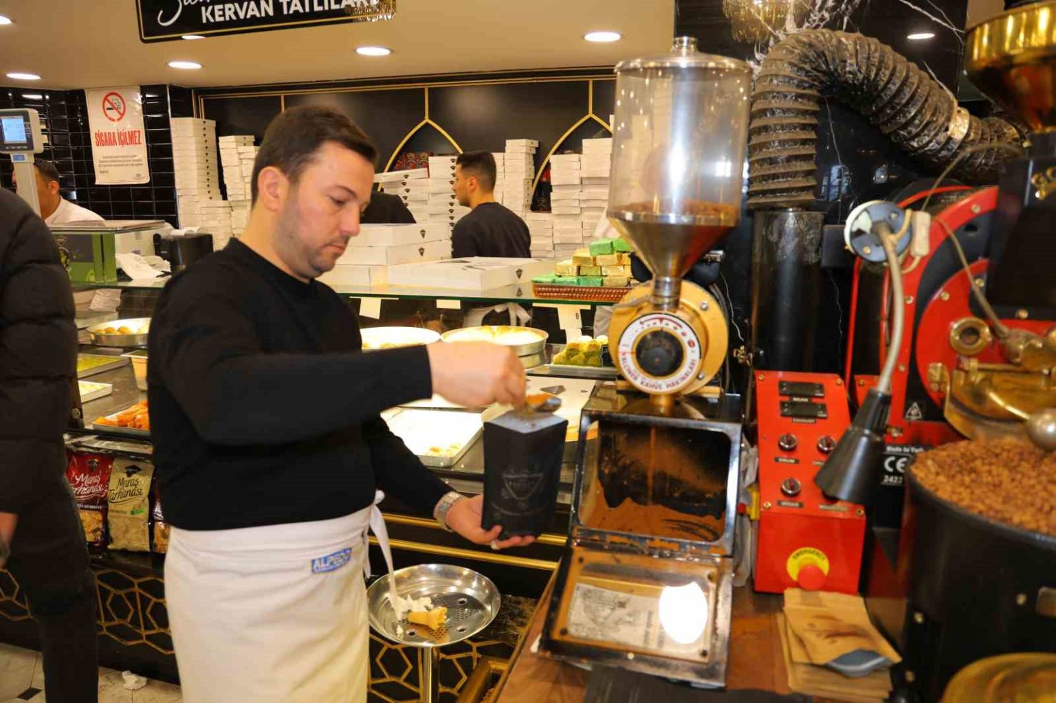 Şakir Kocabaş ise, “Sağlıklı bayrama ulaştık. Allah tekrar önümüzdeki bayramlara ulaştırsın. Kervan pastanesi bu konuda on numara sürekli alışveriş yaparız. Tatlımızı alacağız gelen misafirlere ikram etmek için” diye konuştu.