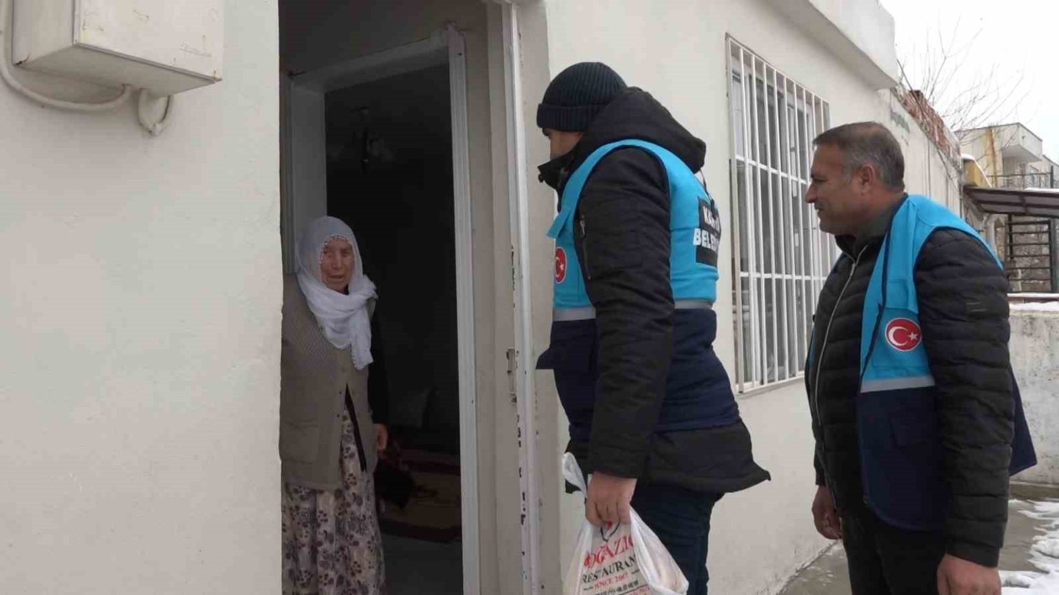 Adıyaman’ın Kahta ilçesinde etkisini sürdüren olumsuz hava şartları nedeniyle evlerinden çıkmakta zorlanan yaşlı ve engelli vatandaşlara Kahta Belediyesi ekipleri tarafından sıcak yemek ulaştırılıyor.