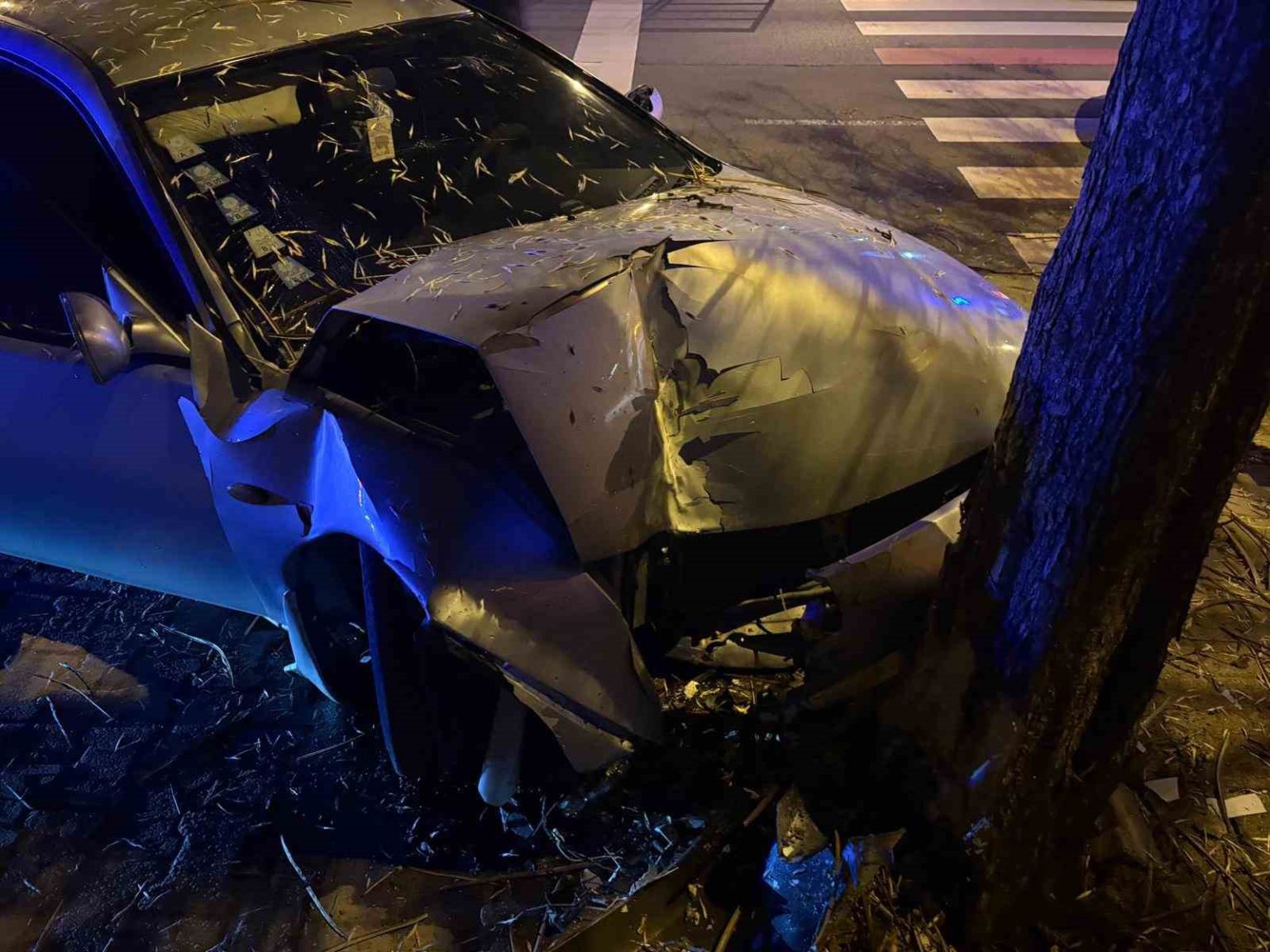 Kaldırıma çıkan otomobil ağaca çarptı: 2 yaralı