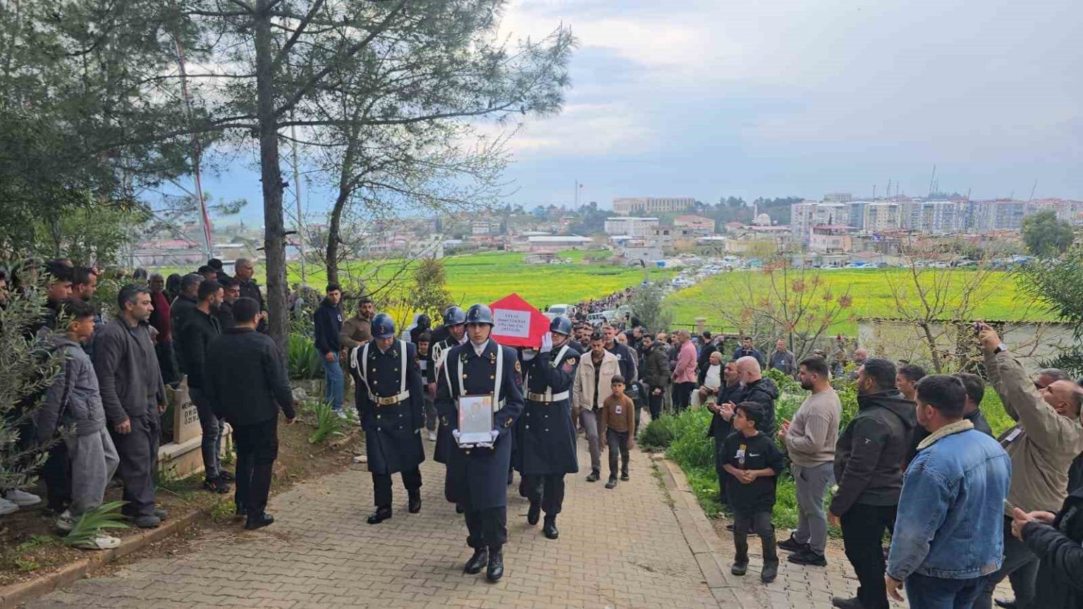 Hatay’ın Kırıkhan ilçesinde kalp krizi geçiren Jandarma Per. Asb. Çvş. Ahmet Tekbaş, kılınan cenaze namazının ardından son yolculuğuna uğurlandı.