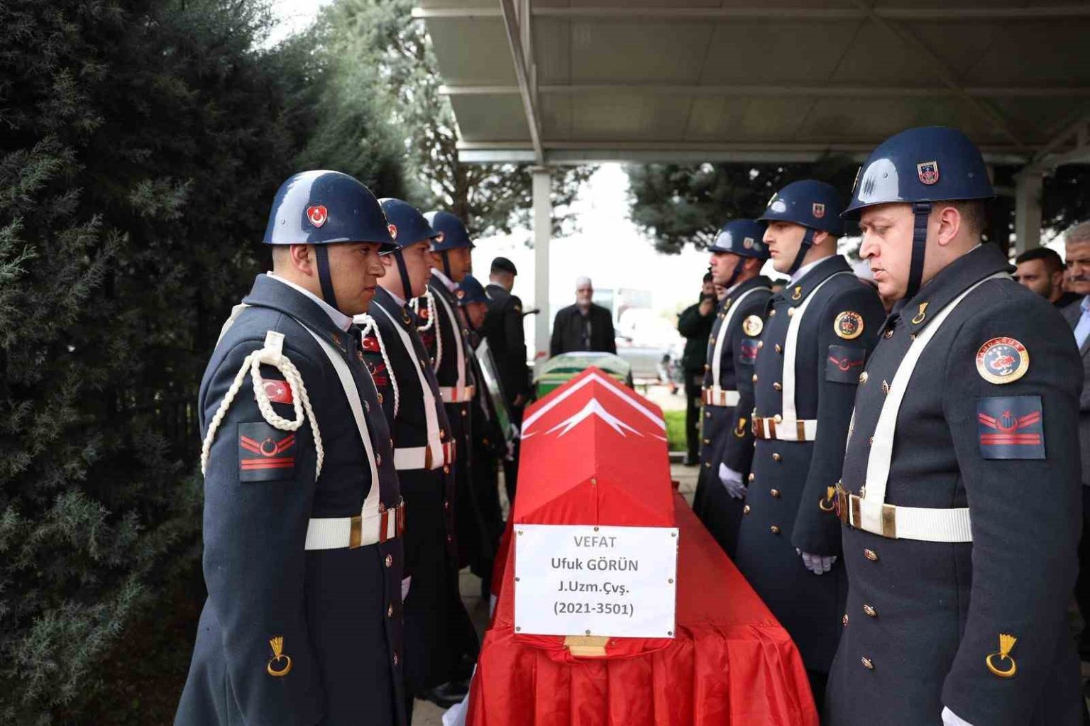 Düzce’de geçirdiği kalp krizi sonucu hayatını kaybeden Uzman Jandarma Çavuş Ufuk Görün, düzenlenen askeri törenle toprağa verildi.
