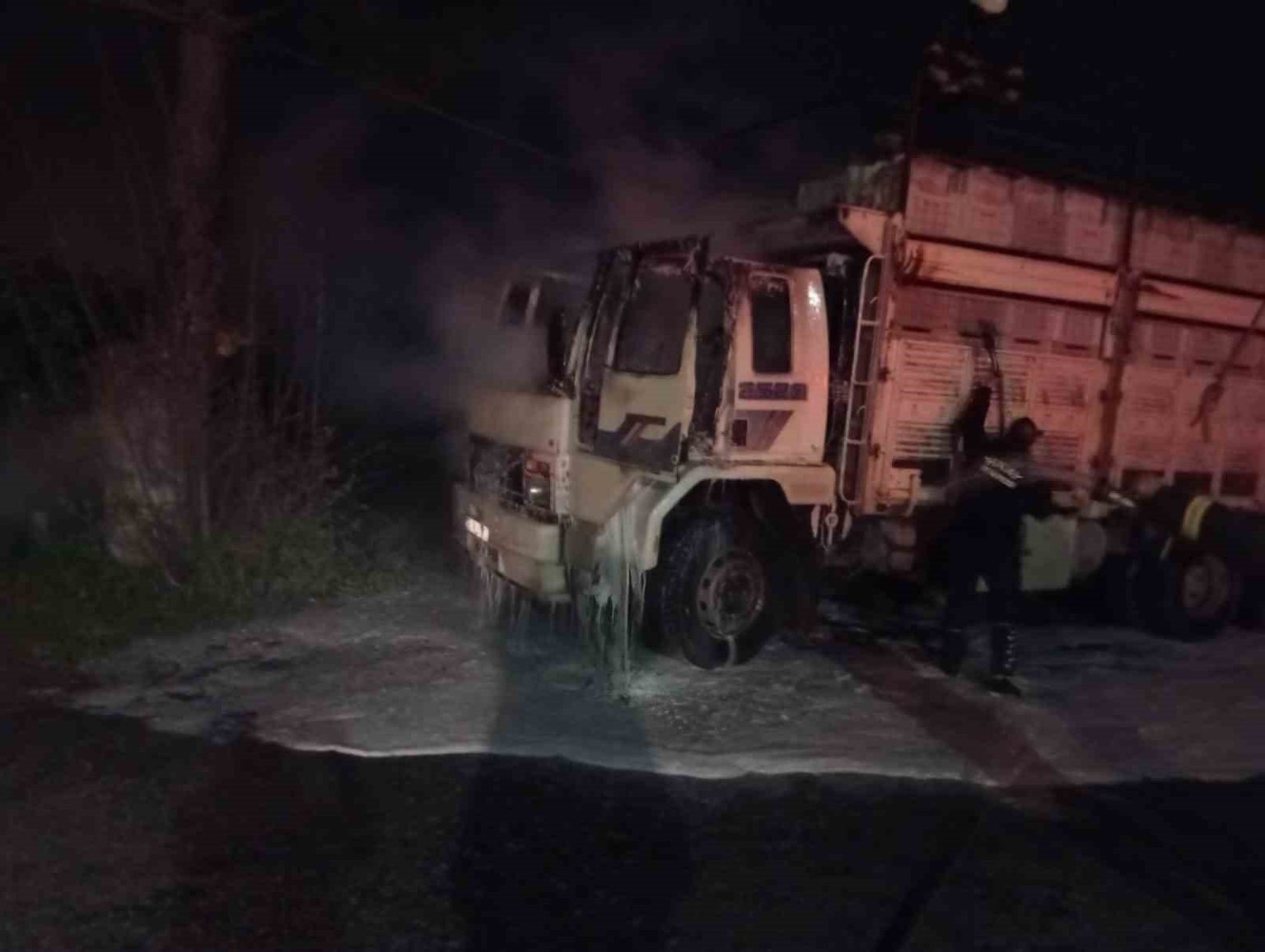 Olay, Erzin ilçesi Hürriyet Mahallesi’nde yaşandı. Yol kenarında park halindeki 06 PLY 73 plakalı kamyon bir anda alev aldı. İhbar üzerine bölgeye itfaiye ekibi sevk edildi. Alevler, aracı sarmadan kısa sürede kontrol altına alındı. Yangında araçta hasar oluştu.