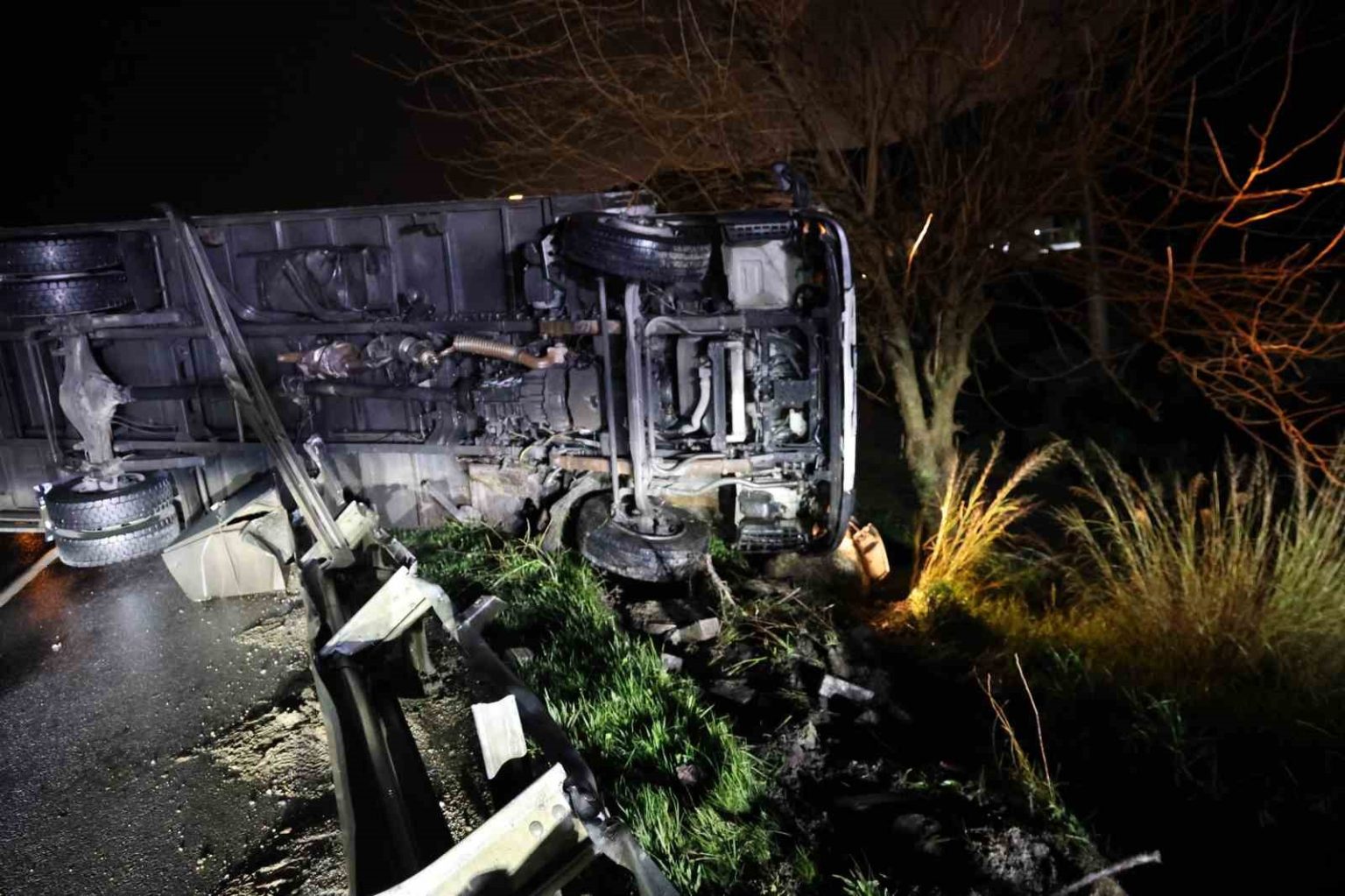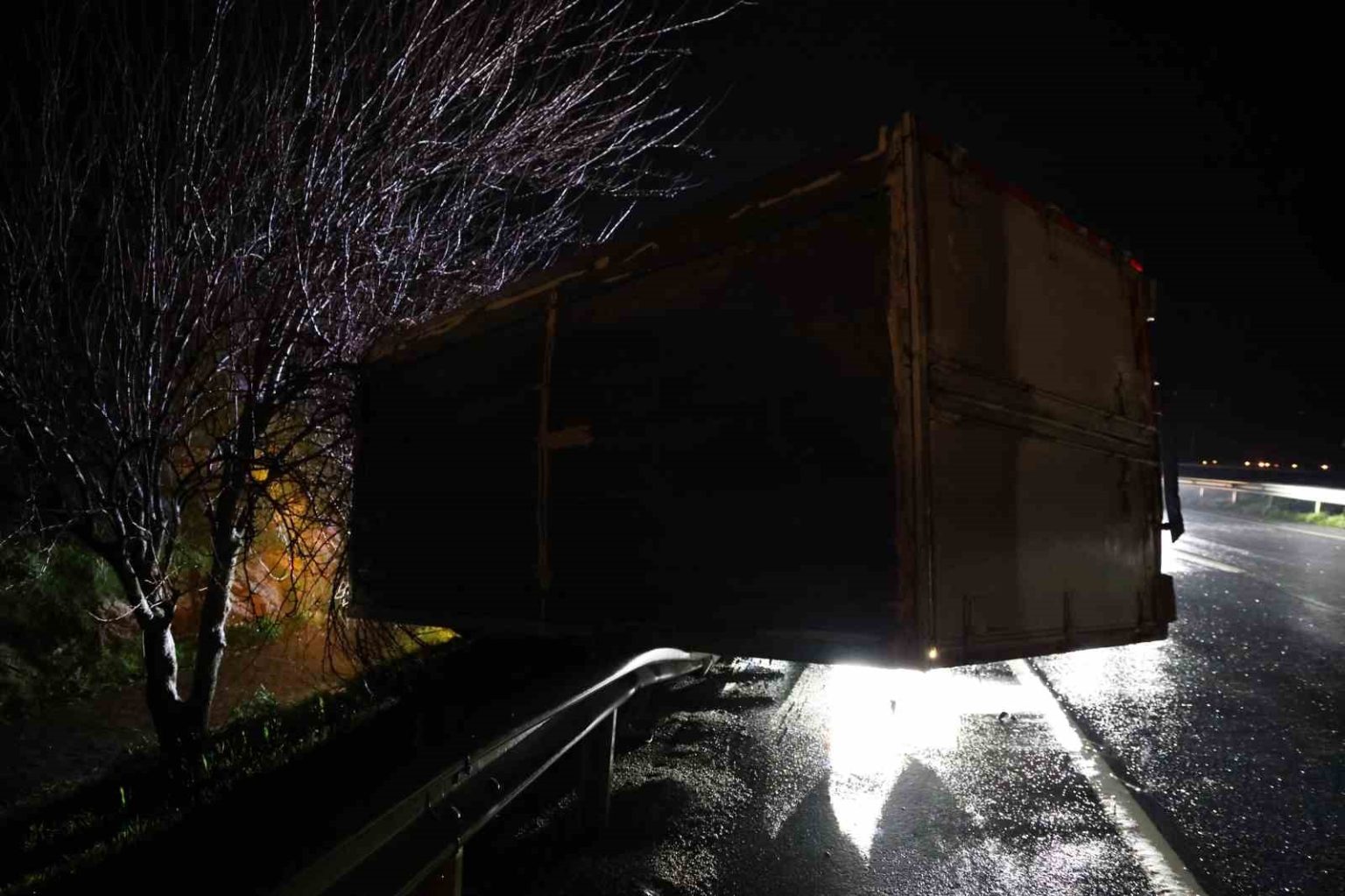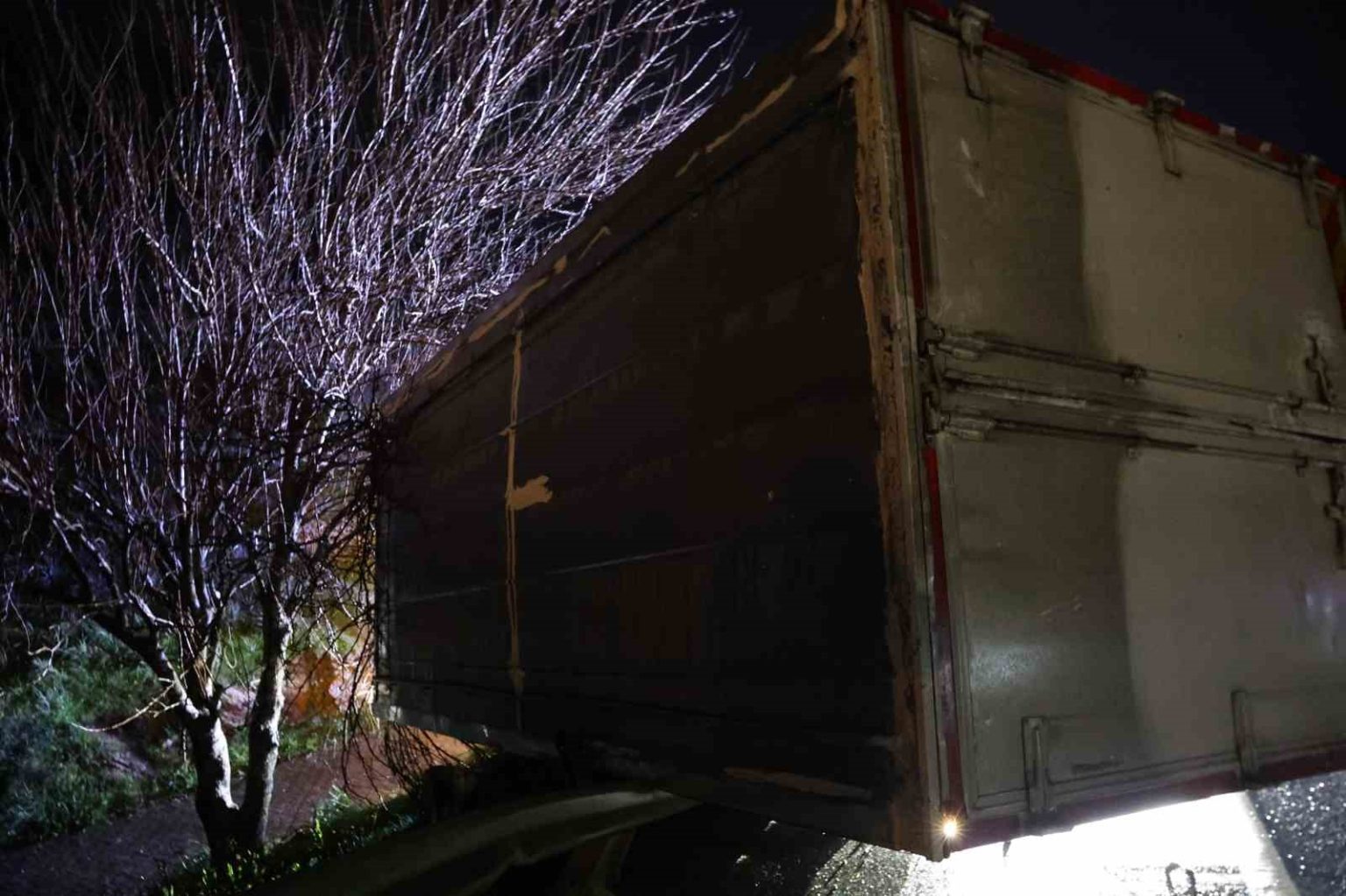 Kamyon bariyerlerde askıda kaldı, sürücü hafif yaralandı