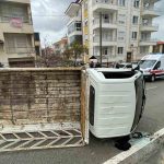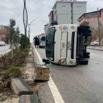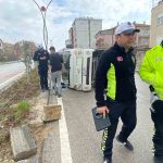 Kamyonet refüje çarparak devrildi: 2 yaralı