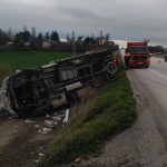 Kamyonet şarampole devrildi, sürücü kazayı yaralanmadan atlattı
