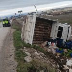 Amasya’da kontrolden çıkan kamyonet şarampole devrildi. Yan yatan kamyonetin sürücüsü kazayı yaralanmadan atlattı.