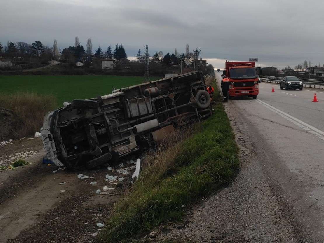 Kamyonet şarampole devrildi, sürücü kazayı yaralanmadan atlattı