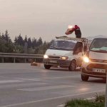Yangın, Hatay – Gaziantep yolu Hassa ilçesi Aktep Mahallesi mevkiinde yaşandı. Trafikte seyir halinde olan ve yük taşıyan kamyonetin kasa kısmındaki kutular alev alarak yanmaya başladı. Çevredeki sürücülerin uyarısıyla yangını fark eden kamyonet sürücüsü, alev alan kutuları boşaltarak, yangının aracın tamamını sarmasının önüne geçti. Araç sürücüsünün yanan kutuları aceleyle boşalttığı anlar ve çevredekilerin yardımı cep telefonu kamerasına yansıdı.