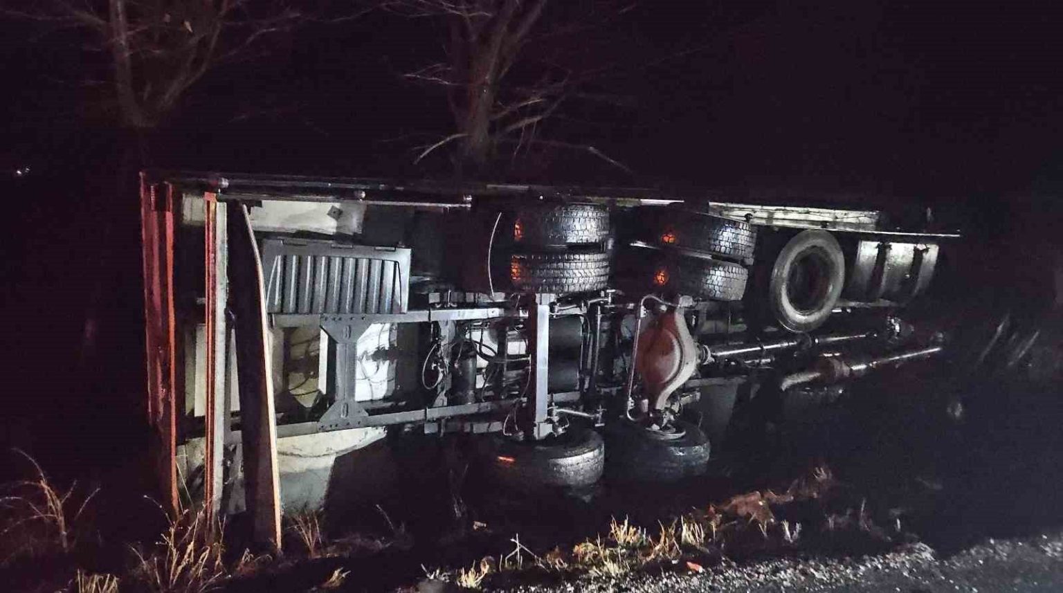 Kamyonla çarpışıp şarampole devrilen otomobil sürücüsü hayatını kaybetti