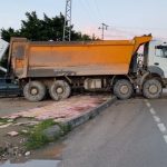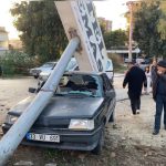 Mersin’in Erdemli ilçesinde kamyonun çarptığı tabela park halindeki otomobilin üzerine devrildi. Kazada kamyon şoförü yaralandı.