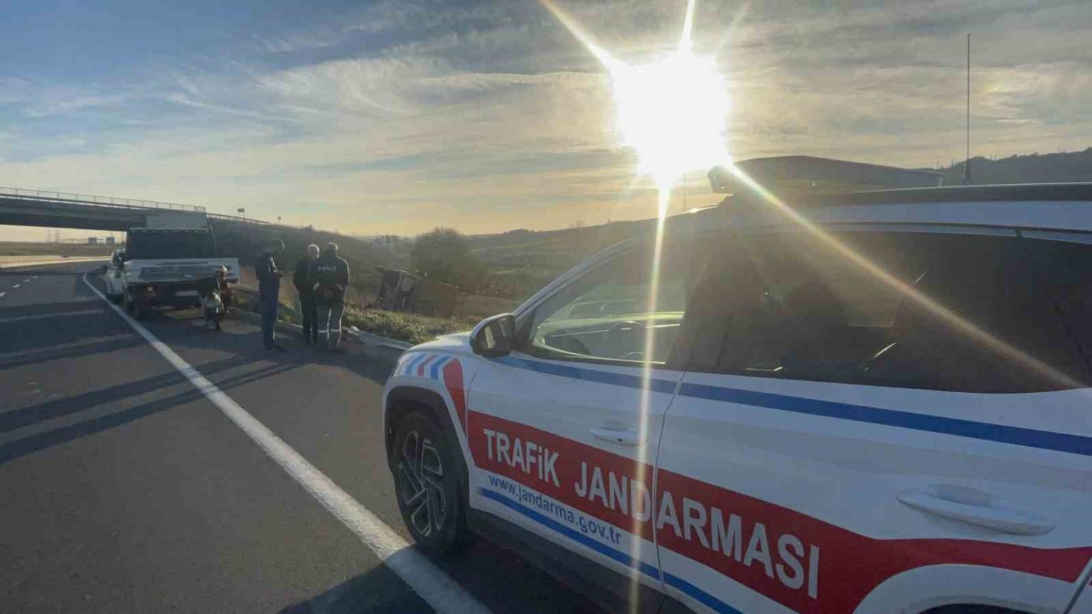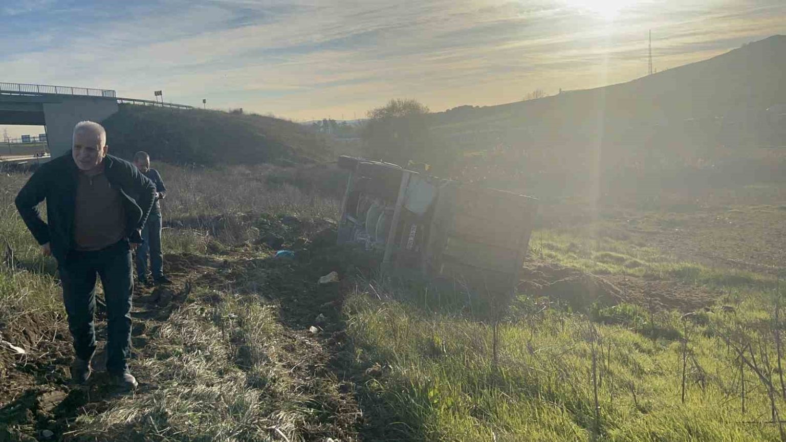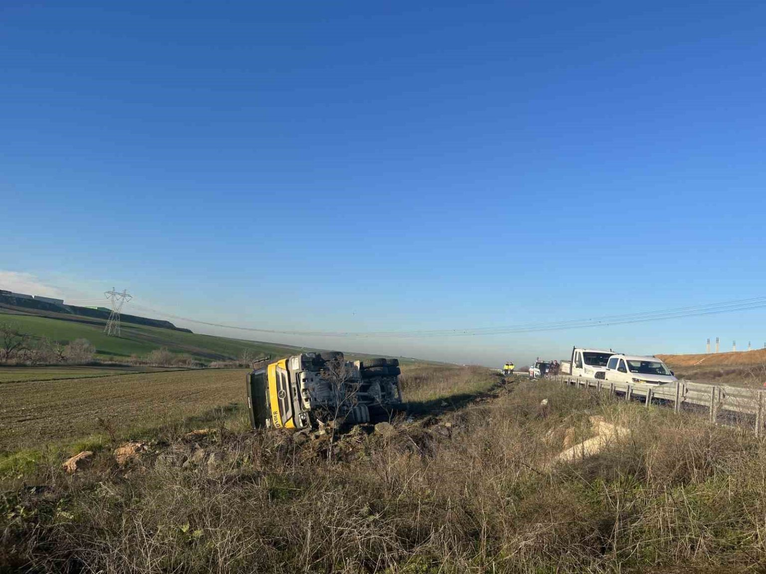 Tekirdağ Çorlu’da bariyerlere çarparak metrelerce sürüklenen kum yüklü hafriyat kamyonu tarlaya devrildi. Kamyon şoförü Mehmet Kopuz, feci kazayı burnu bile kanamadan atlatmasını emniyet kemeri takmasına borçlu olduğunu dile getirdi.